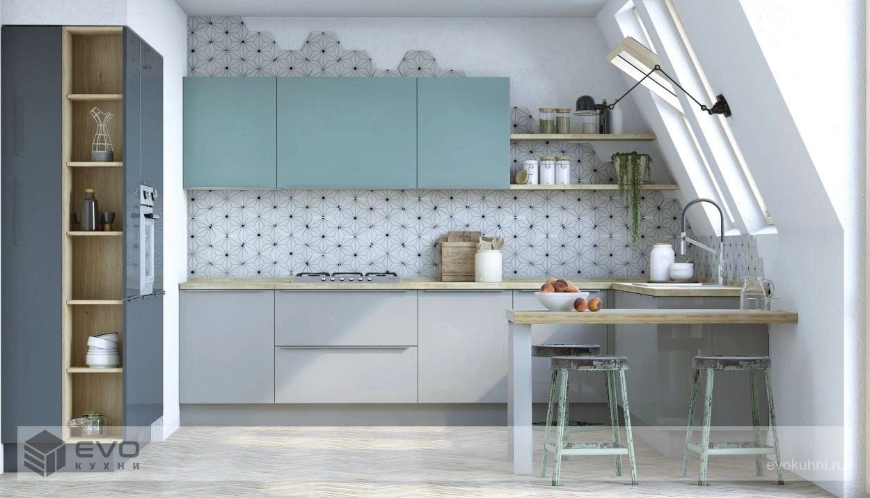 В небольших кухнях хорошо работают лаконичные модели вроде кухни TOPAZ с барной стойкой: в них уже заложены грамотные пропорции и удобная высота барной части.
