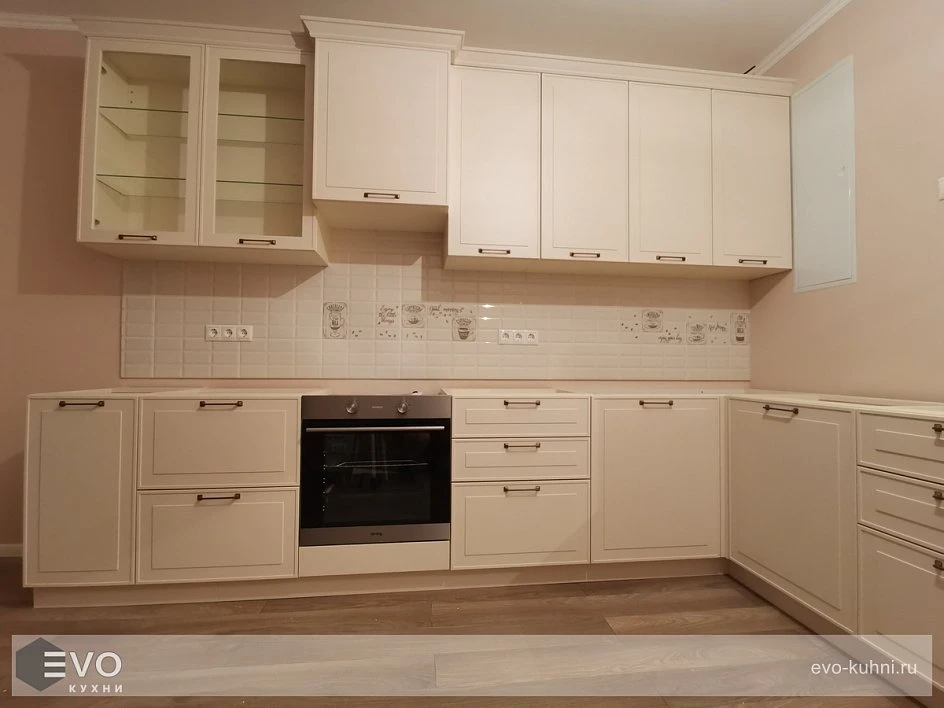 Светлые тона подчёркивают пропорции и детали фасадов, не перегружая пространство. Они визуально расширяют помещение, отражают свет и делают интерьер более лёгким. Для классики это важно: на спокойном фоне лучше читаются филёнки, карнизы и аккуратный декор, а традиционный образ кухни выглядит актуально и в современных проектах.
