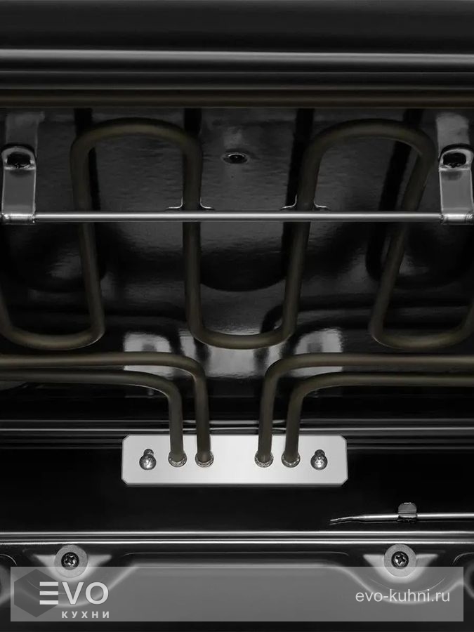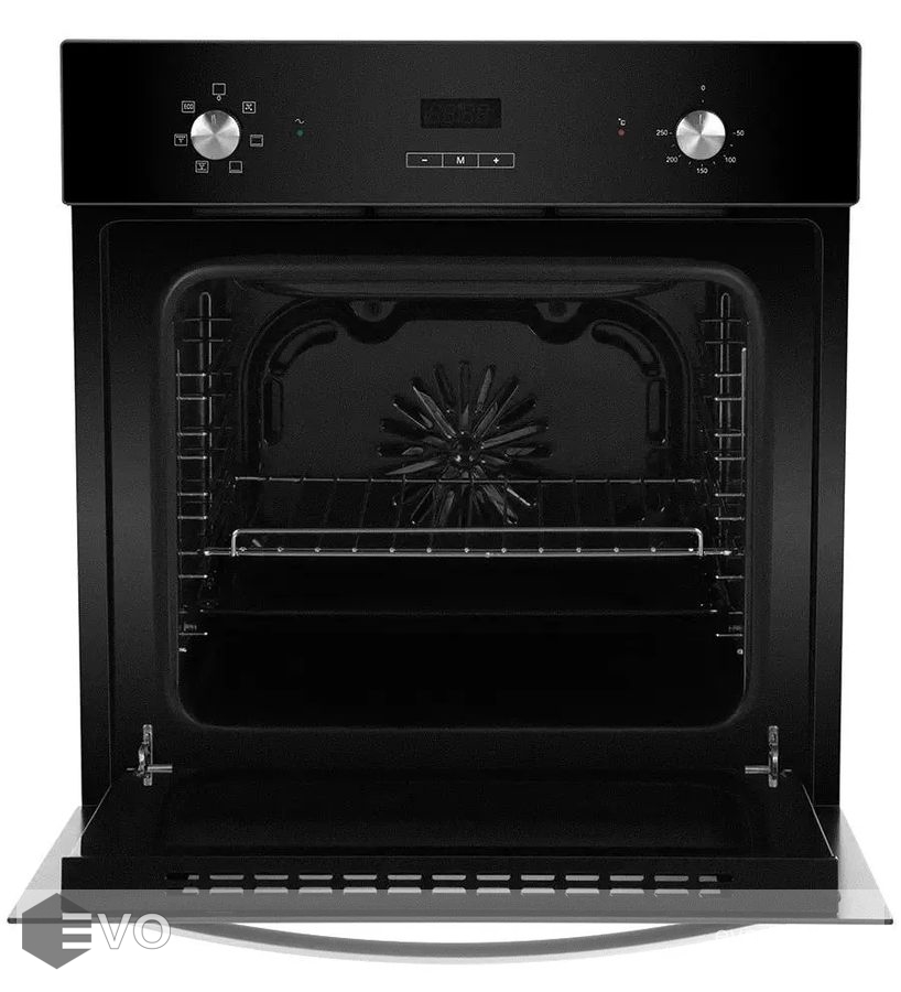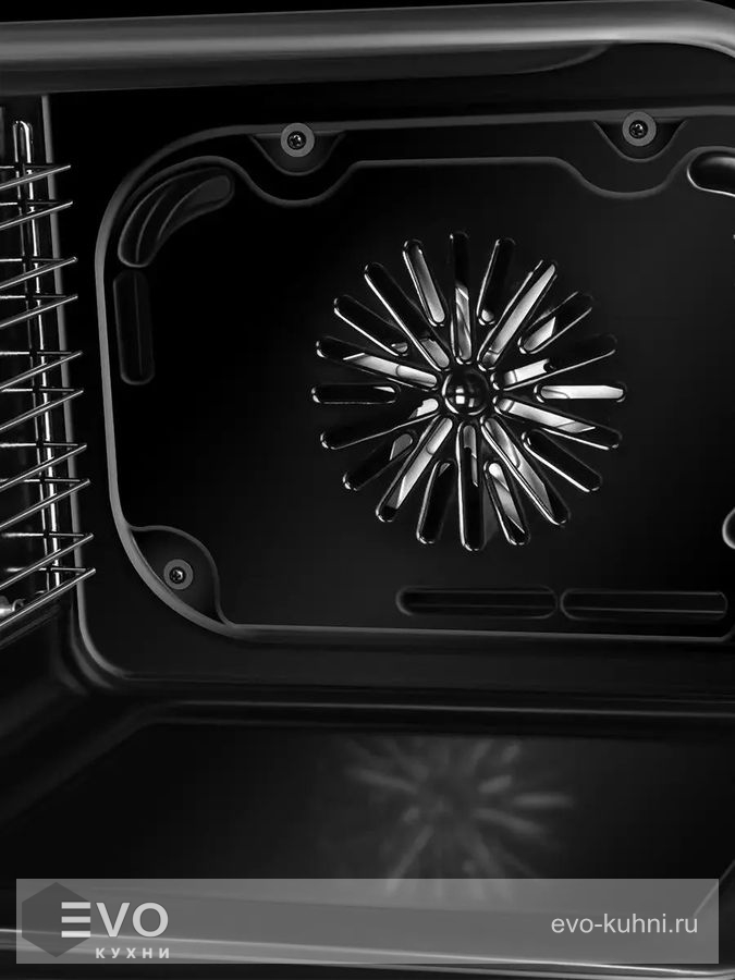 Духовка вмещает 60 л и быстро нагревается до 250°C.