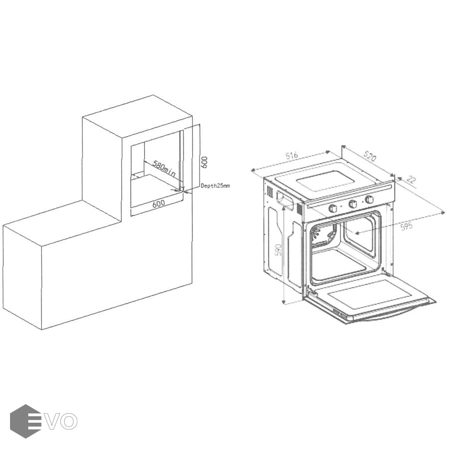 Размеры встраивания (ВхШхГ), мм: 600х516х498 мм