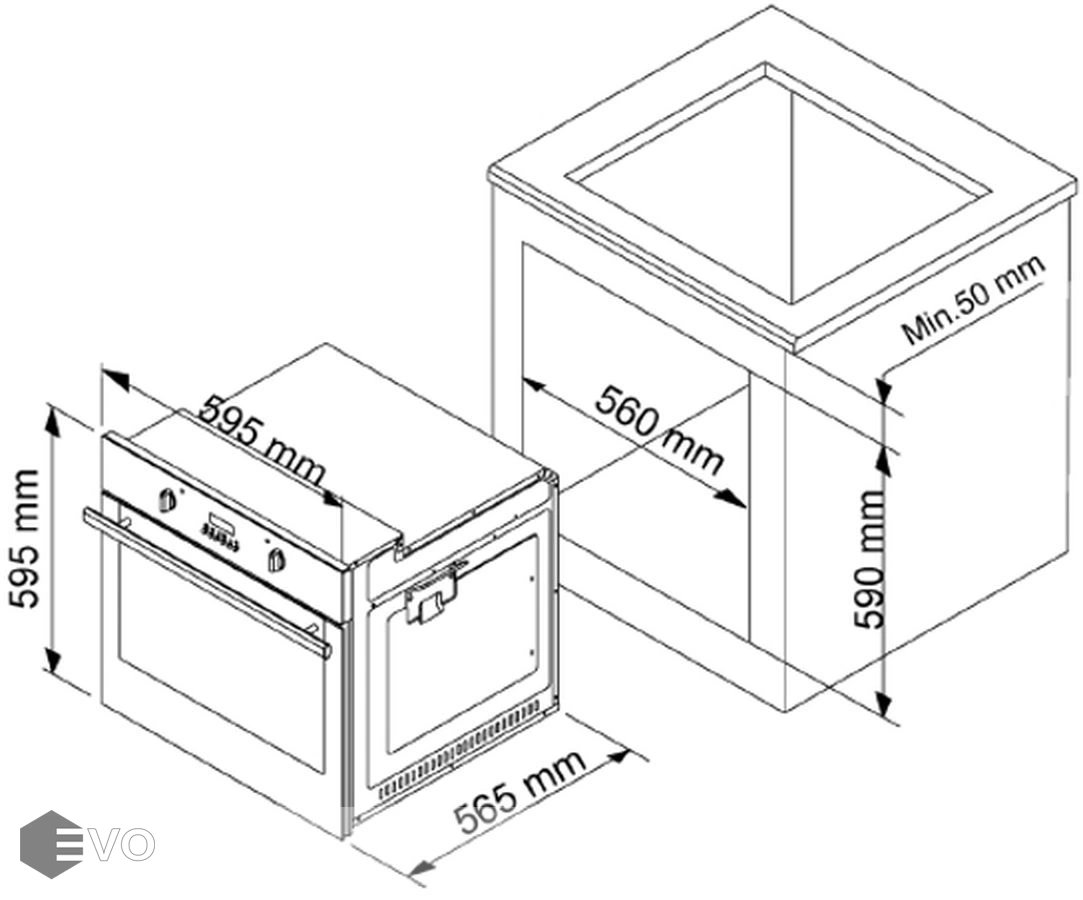 | Размеры встраивания (ВхШхГ), мм: | 590х560х500 мм |