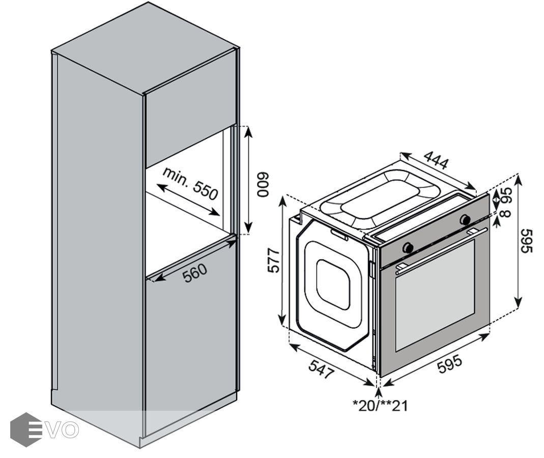 Размеры встраивания (ВхШхГ), мм: 600х560х550