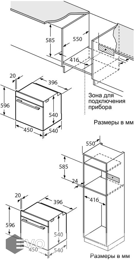 | Размеры встраивания (ВхШхГ), мм: | 585х416х550 мм |