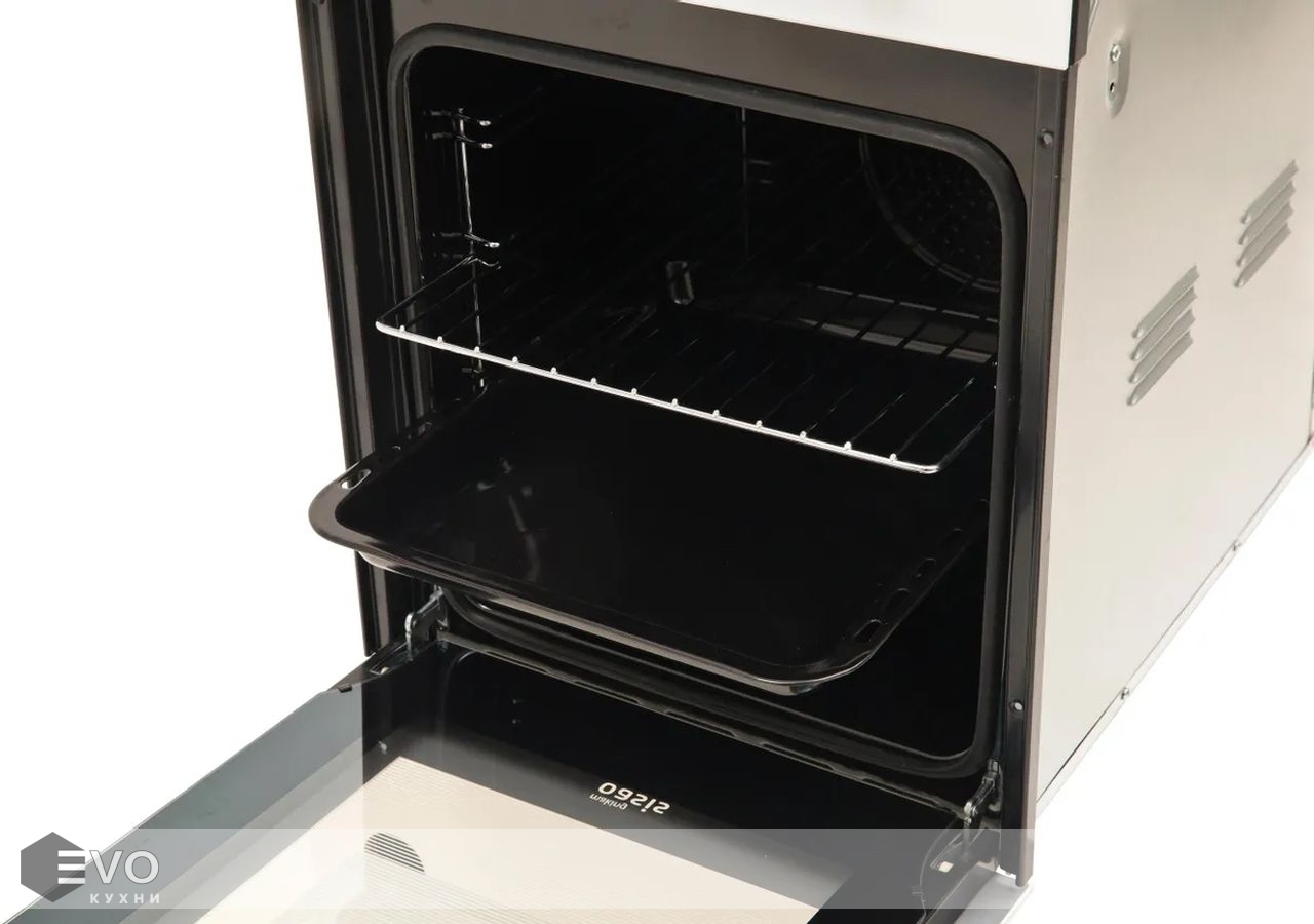 - Полностью стеклянная внутренняя поверхность дверцы духовки: да