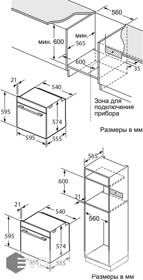 | Размеры встраивания (ВхШхГ), мм: | 600х560х565 мм |
