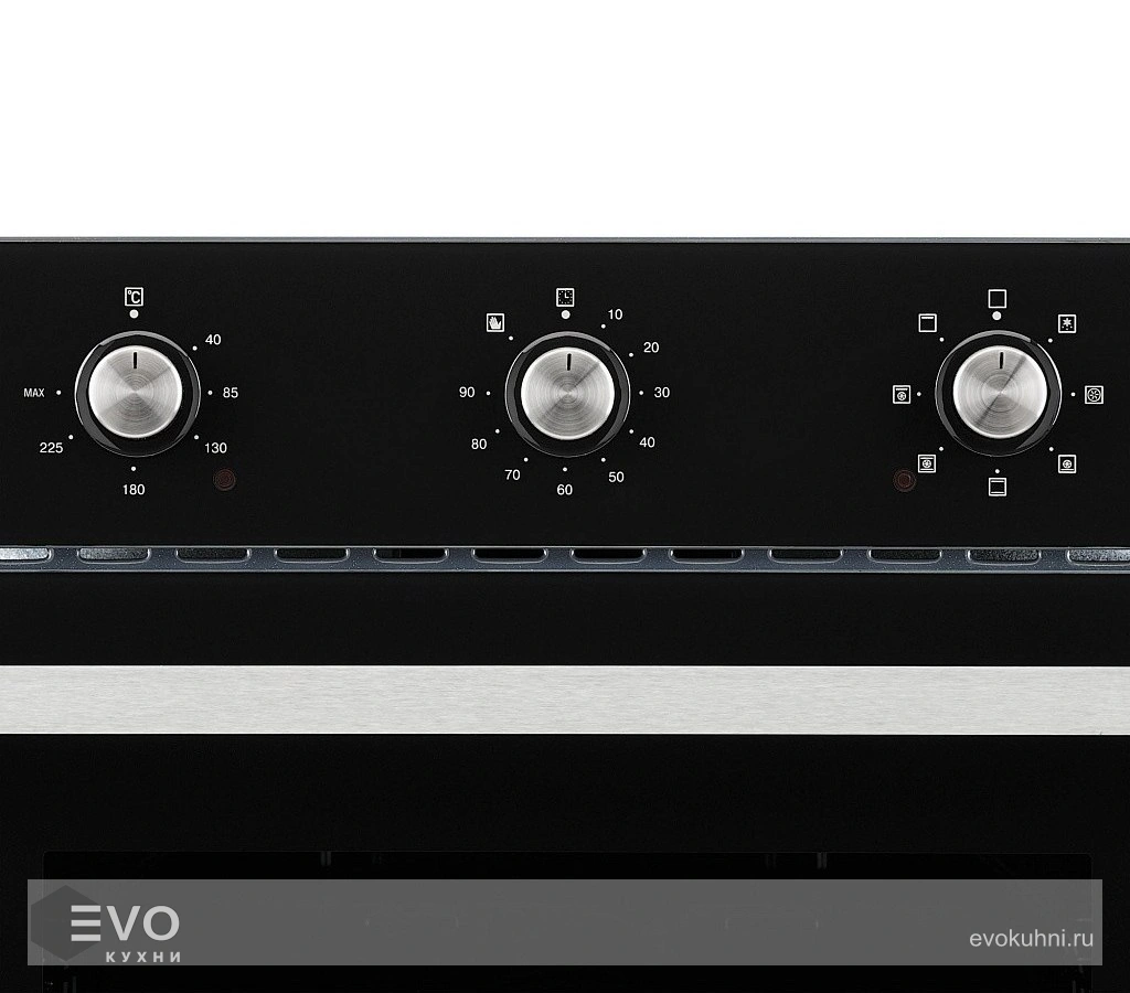 - Режимы работы духовки: верхний и нижний нагрев, нижний нагрев с конвекцией, верхний и нижний нагрев с конвекцией, гриль, гриль с конвекцией, 3D конвекция, освещение, размораживание