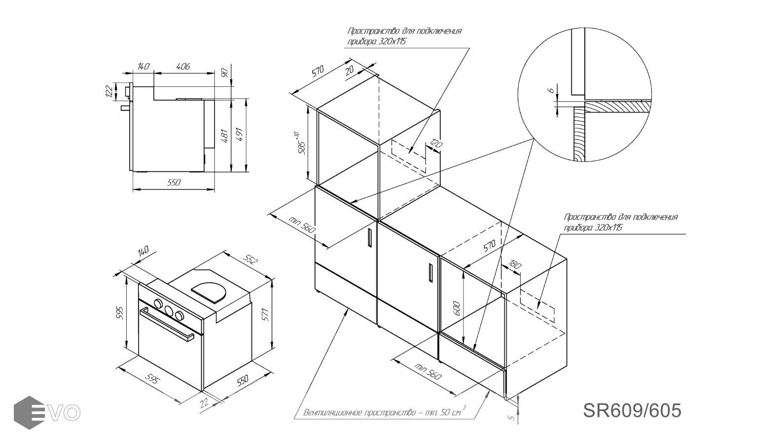 • Размер ниши для встраивания под столешницу (ВхШхГ), мм: 600×560×570