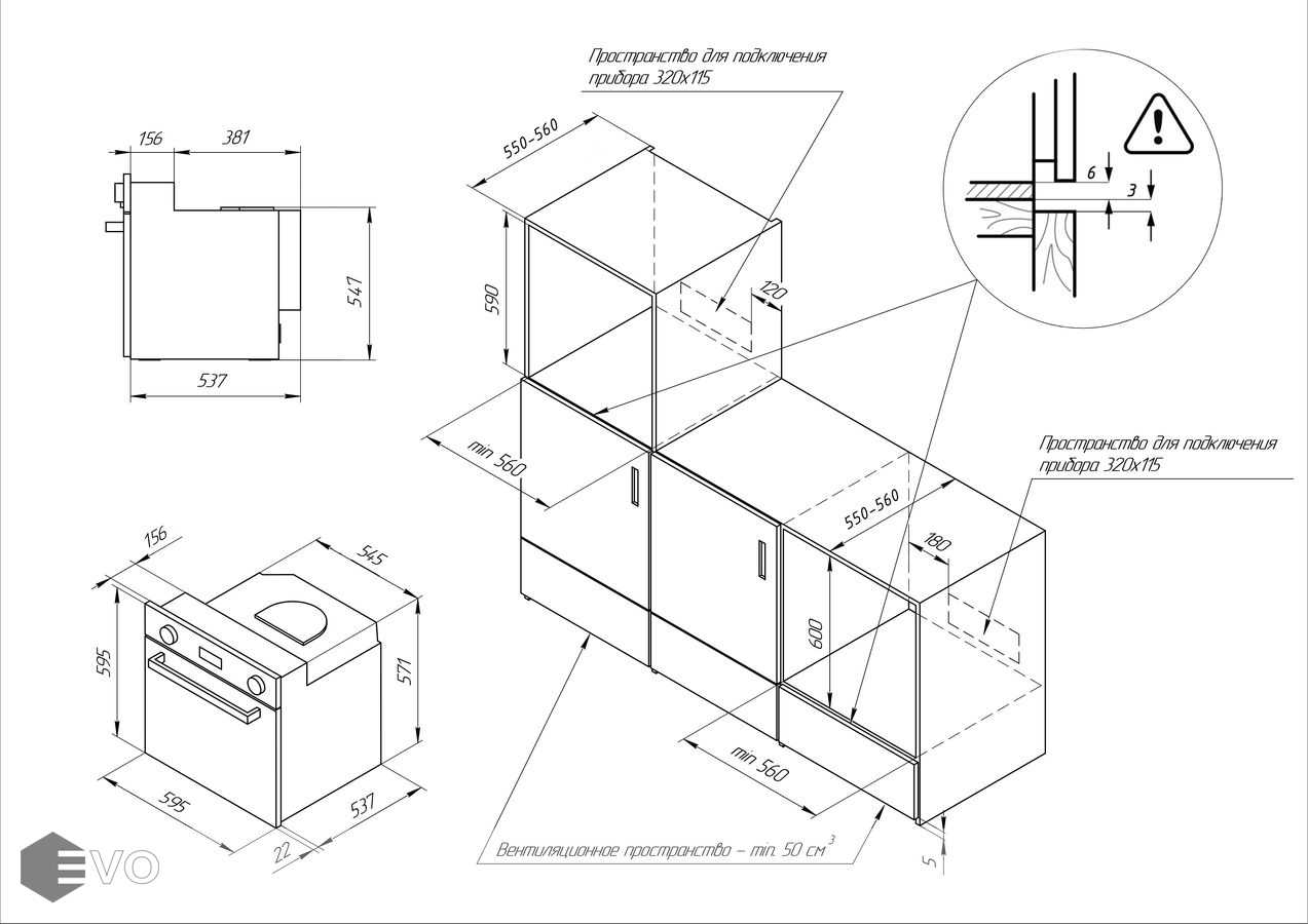 Размеры встраивания (ВхШхГ), мм: 600х560х580