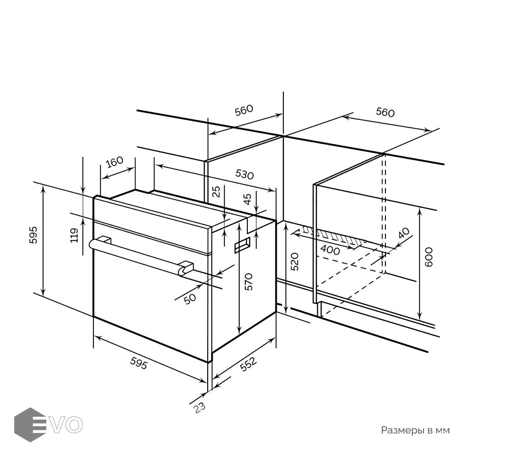 - Режимы работы: 7 (конвекция, традиционный, нижний нагрев, турбо гриль, турбо гриль с конвекцией, подсветка, размораживание)