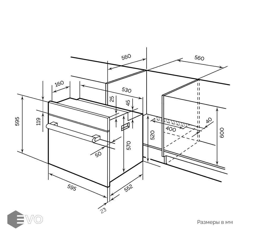 - Режимы работы: 7 (конвекция, традиционный, нижний нагрев, турбо гриль, турбо гриль с конвекцией, подсветка, размораживание)