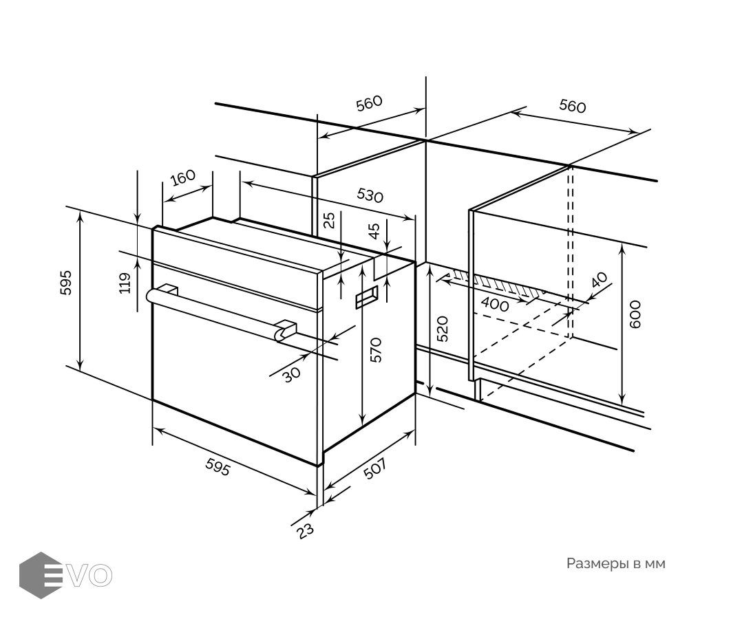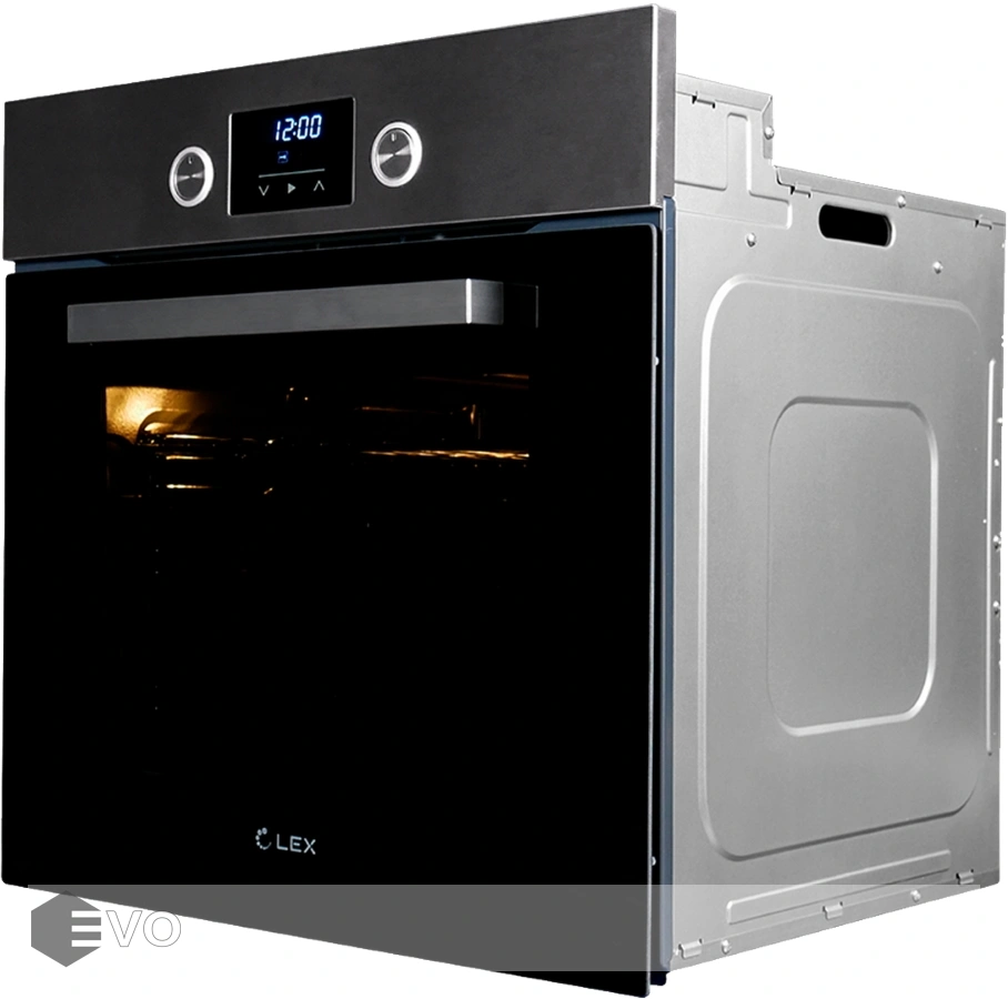 Электрический духовой шкаф LEX EDP 093 IX NEW – многофункциональный духовой шкаф с 9-ю режимами работы. Температура может регулироваться в диапазоне от 50 до 250С. Расшифровку иконок режимов нагрева можно найти в инструкции, которая прилагается к каждому прибору. Функция Confit обеспечивает медленное томление продуктов (мяса, рыбы) на температуре менее 100 градС.