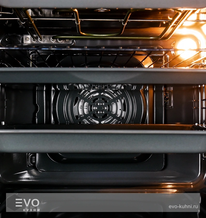 Телескопические направляющие облегчают установку и извлечение противня; позволяют полностью выдвинуть противень за пределы шкафа, чтобы безопасно проверить готовность блюда или добавить какой-либо ингредиент.