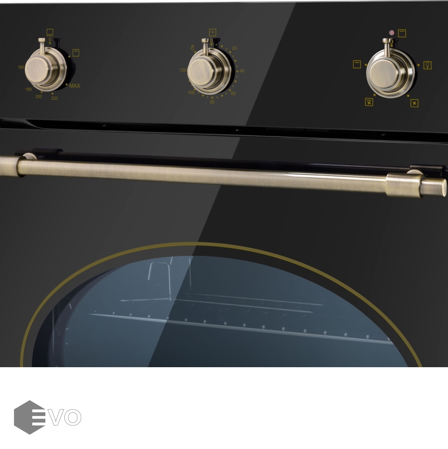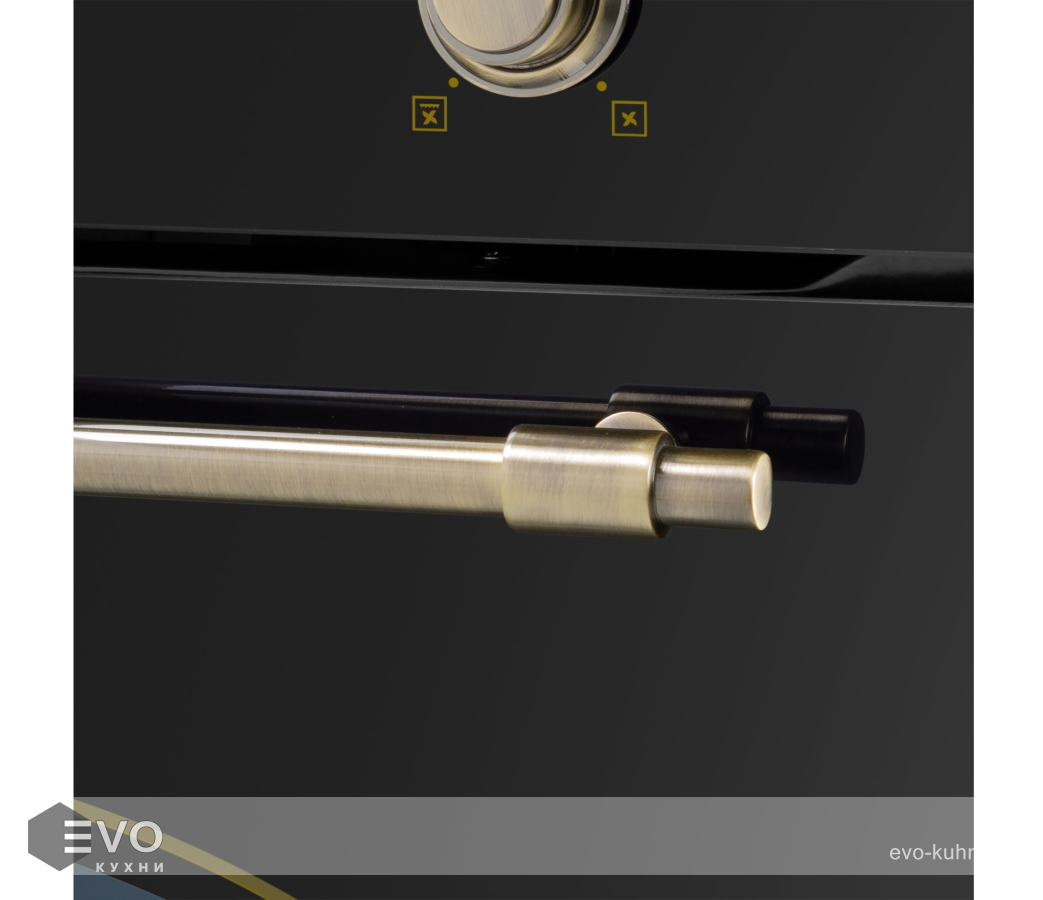 Для управления температурой и режимами работы применяются специальные поворотные переключатели бронзового цвета. Фронтальная панель дверцы, лицевая часть блока управления и фасад ручки дверцы сделаны из высококачественного жаропрочного стекла, окрашенного по всему объему, что является отличительной чертой бытового прибора премиум-класса.