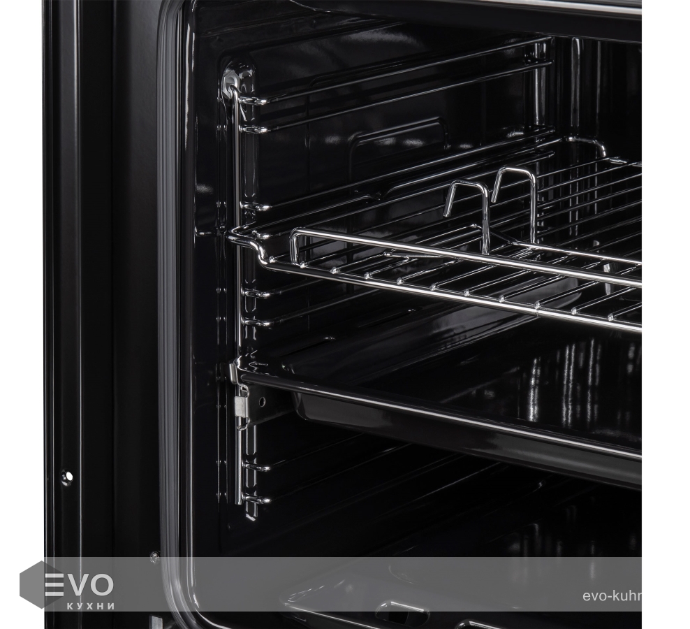 Механическое управление осуществляется цельнометаллическими поворотными ручками. Можно выставить температуру готовки, установить таймер (0-55 мин) и выбрать один из 5 режимов работы: нижний газовый нагрев с вентилятором, традиционная готовка, вентилятор, освещение. Данная модель работает как при открытом, так и при закрытом гриле.