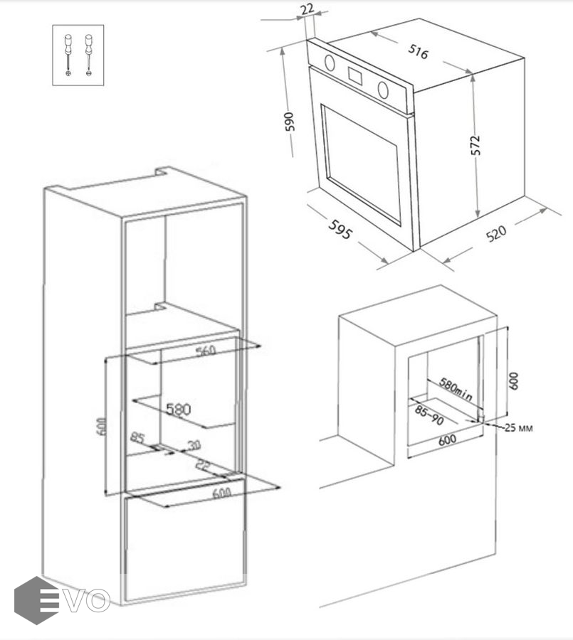 | Размеры встраивания (ВхШхГ), мм: | 600х600х580 |