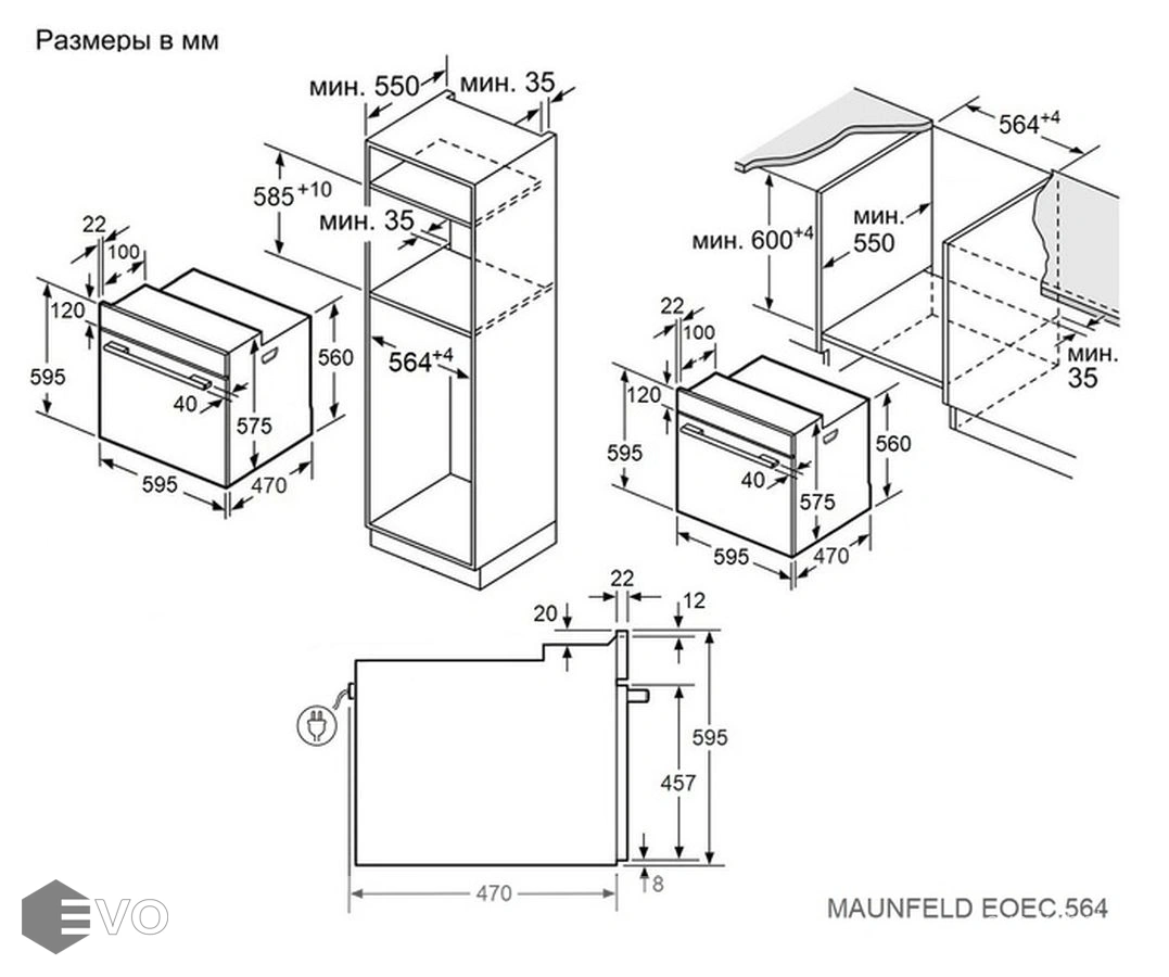 | Размеры встраивания (ВхШхГ), мм: | 600х564х550 |
