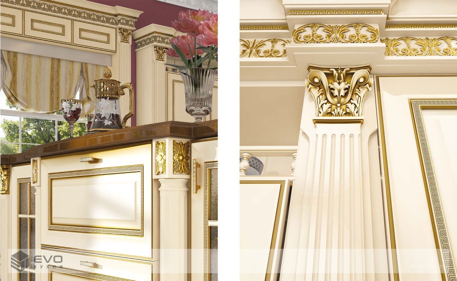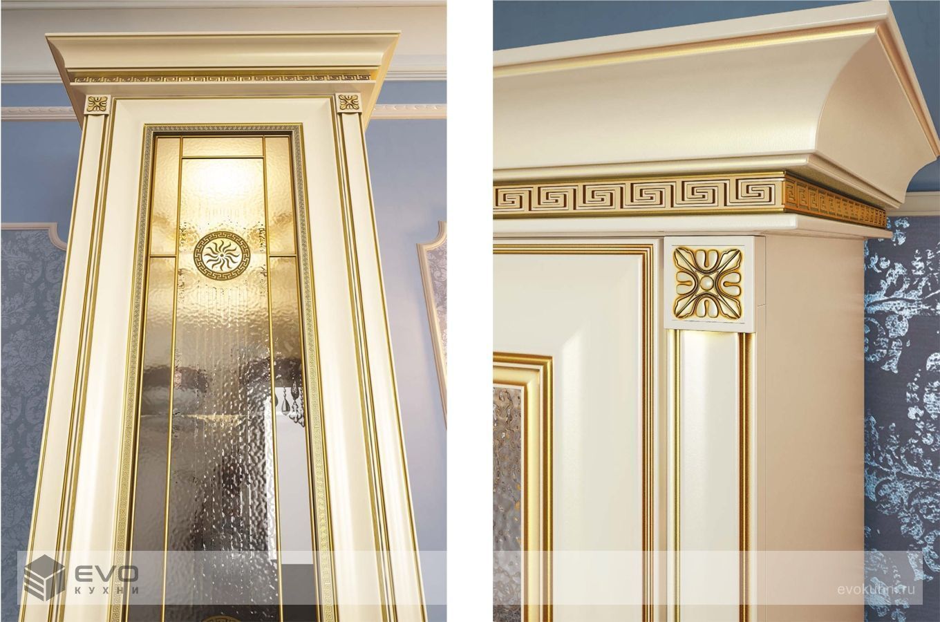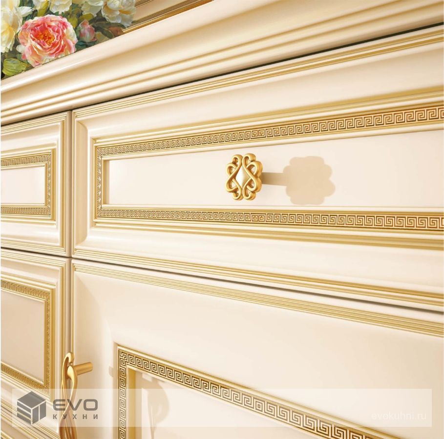 Отделкаlaccato с закрытой текстурой, цвет “слоновая кость”, золотое патинирование, лакирование