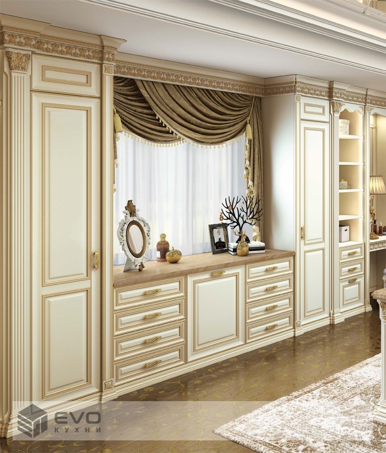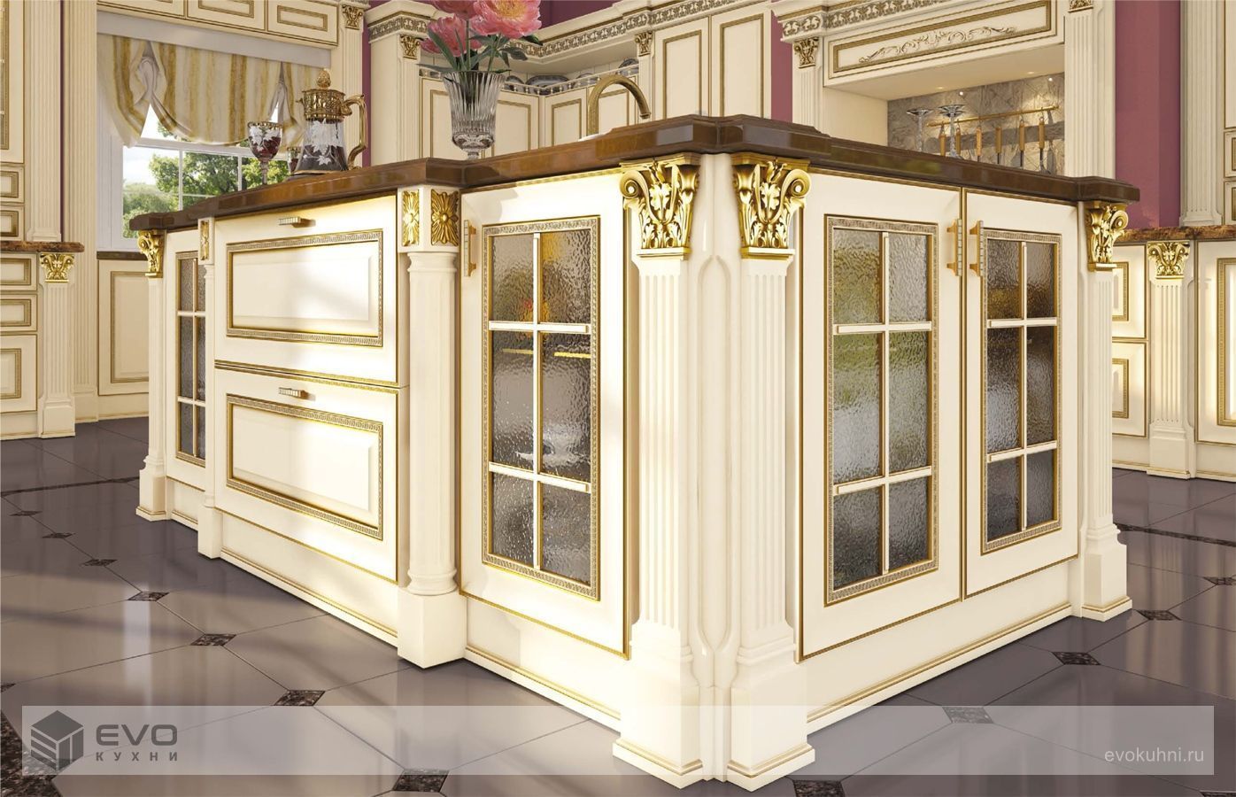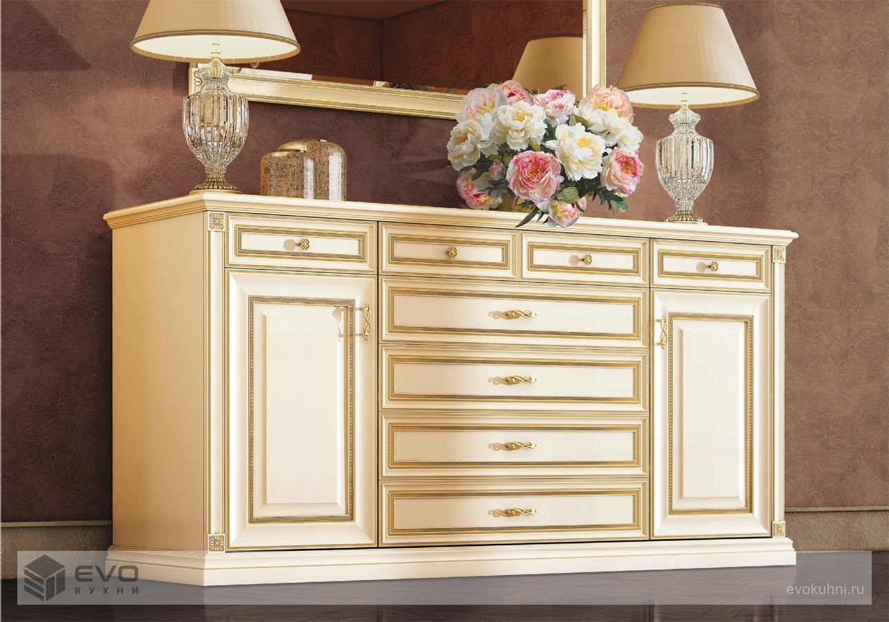 Отделкаlaccato с закрытой текстурой, цвет “слоновая кость”, золотое патинирование, лакирование