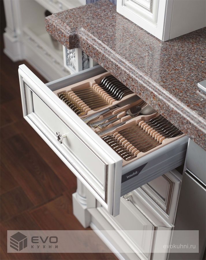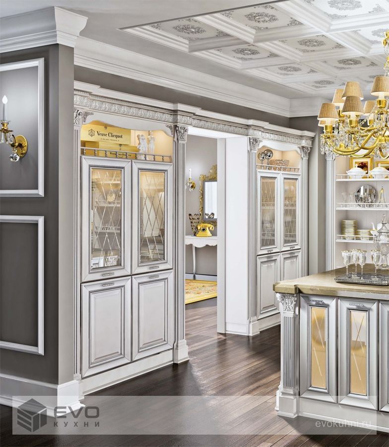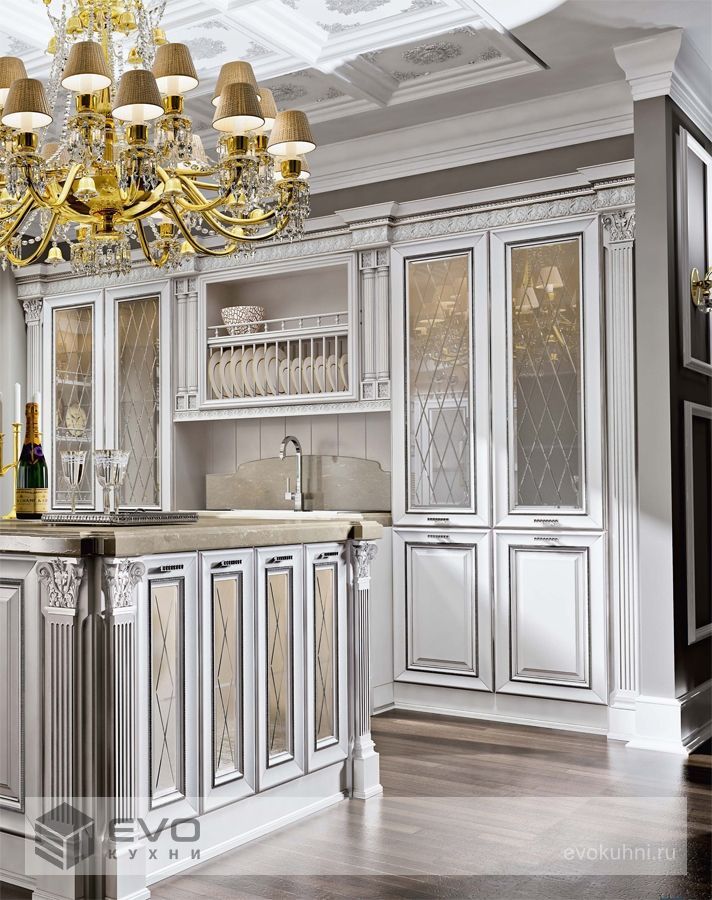 Отделкаlaccato с закрытой текстурой, цвет “белый перламутр”, платиновая антикатура, лакирование