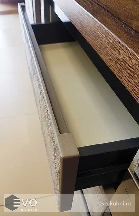 Особенностью данной модели является фрезерованная ручка на внутренней стороне фасада. С лицевой стороны фасада ручка не заметна.