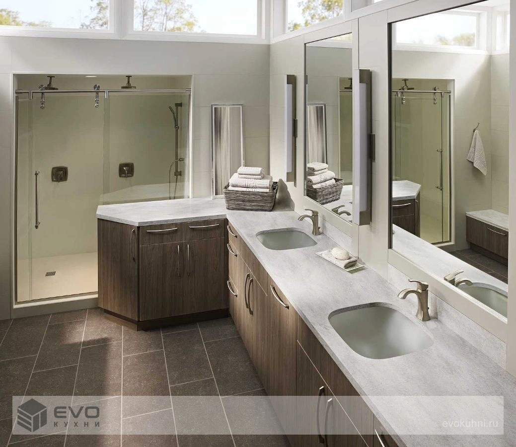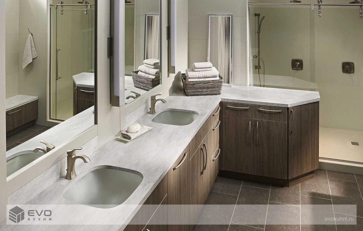 Поверхности Corian имеют сертификат LGA ( устойчивость к бактериям и грибкам) что позволяет использовать материал в зонах с повышенной влажностью. Кухни, сан.узлы, ванные комнаты, душевые — здесь Corian получил широкое применение. Благодаря не большому весу камня, и толщину от 6 мм, его можно использовать в обшивке стеновых панелей в сан.узлах, душевых и ванных комнатах. Широкий ассортимент акриловых панелей позволяет удовлетворить вкус даже самого взыскательного клиента, а коллекция моек и раковин, составляет достойную конкуренцию ведущим европейским производителям сан.техники.