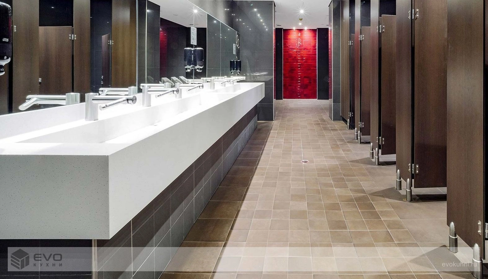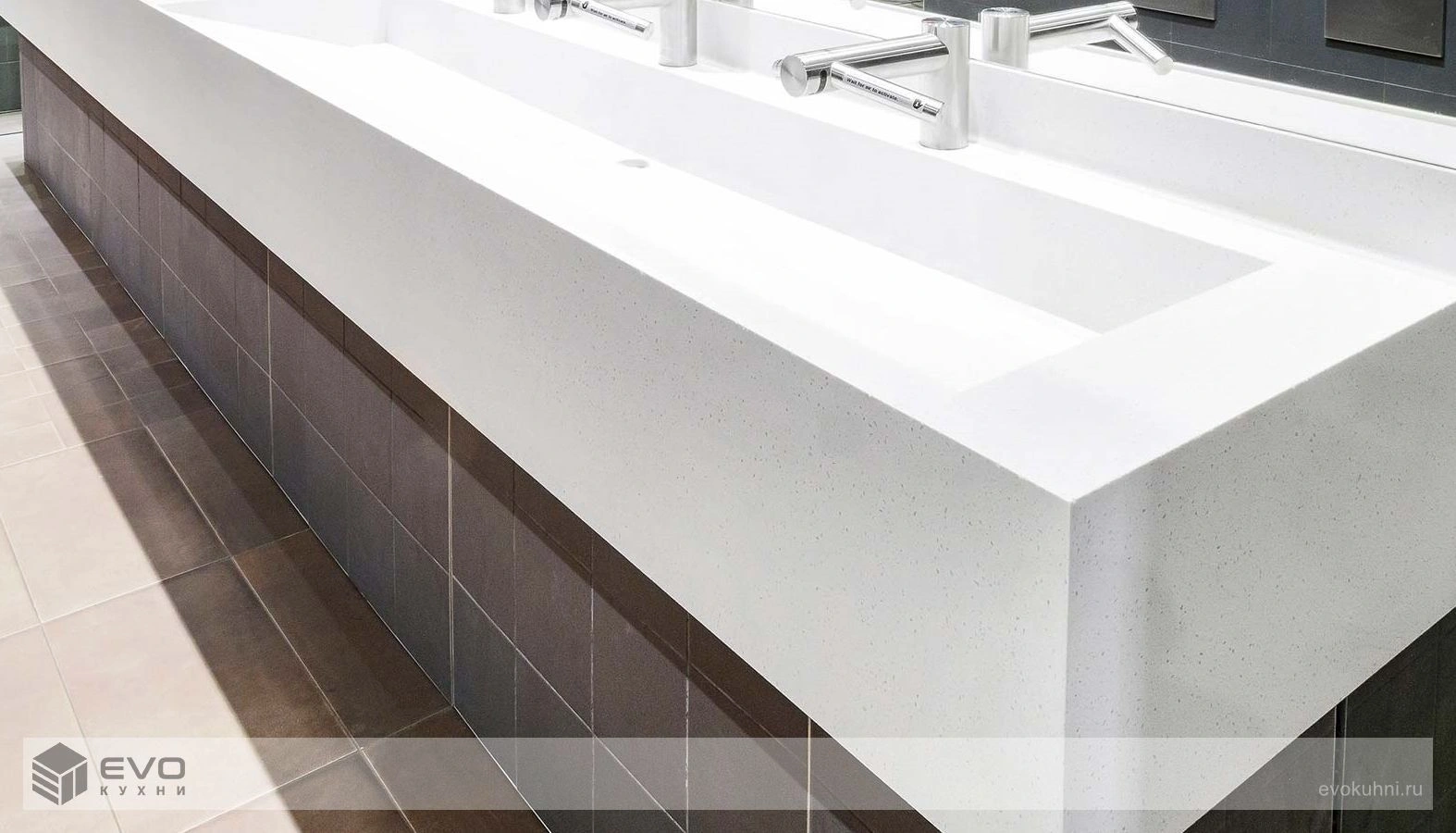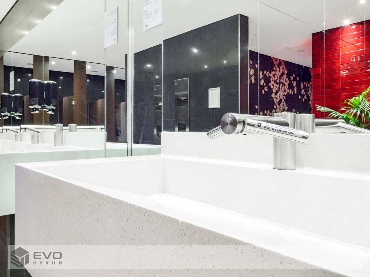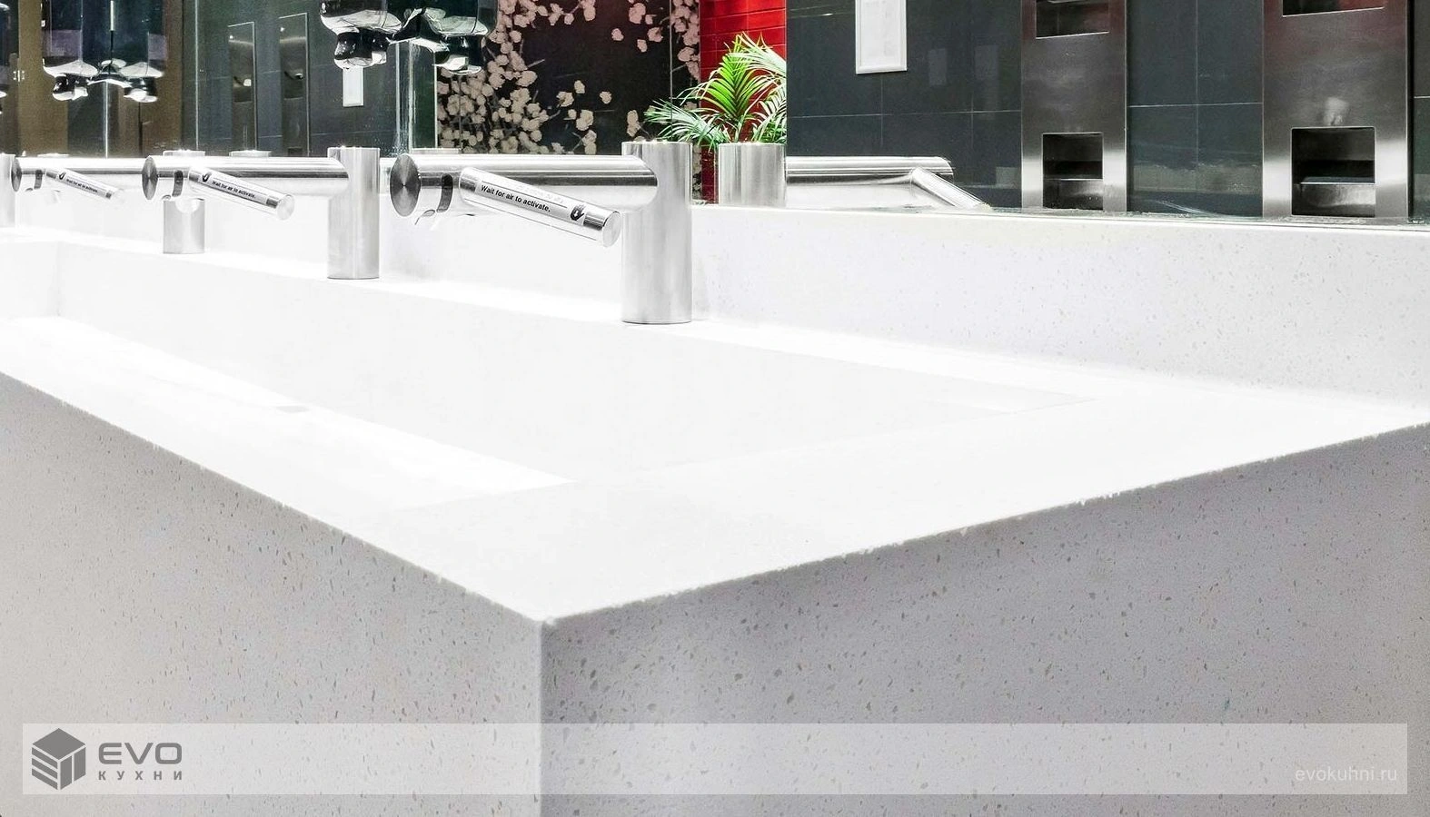 Corian - непористый материал, долговечен, его легко чистить, поэтому он идеально подходит для применения в кафе и столовых, а также в больницах и клиниках. Он также прочен и не тускнеет, потому что окрашен на всю глубину. А еще материалы для поверхностей Corian (а также клеи и герметики, стоит им подсохнуть) содержат мало летучих органических соединений, нетоксичны и не вызывают аллергии у человека.