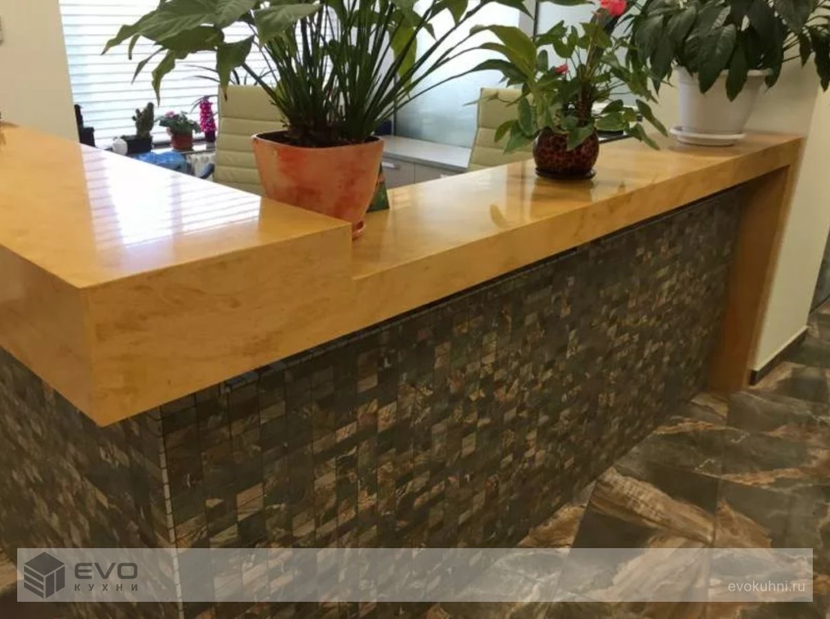 Дизайнеров этот материал привлекает тем, что при термообработке ему можно придать любую форму, поэтому из него зачастую производятся разнообразные элементы декора. Чаще всего, изделия из данного вида искусственного камня применяются в интерьерах ванных комнат, кухонь, для изготовления мебели, осветительных приборов, подоконников, при облицовке стен.