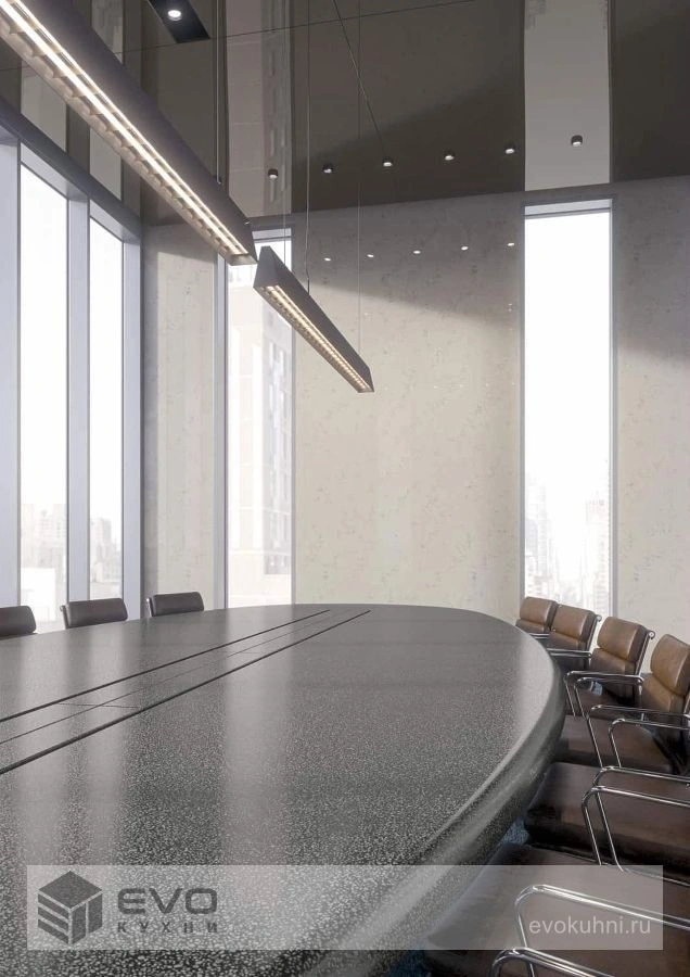 Corian - непористый материал, долговечен, его легко чистить, поэтому он идеально подходит для применения в кафе и столовых, а также в больницах и клиниках. Он также прочен и не тускнеет, потому что окрашен на всю глубину. А еще материалы для поверхностей Corian (а также клеи и герметики, стоит им подсохнуть) содержат мало летучих органических соединений, нетоксичны и не вызывают аллергии у человека.