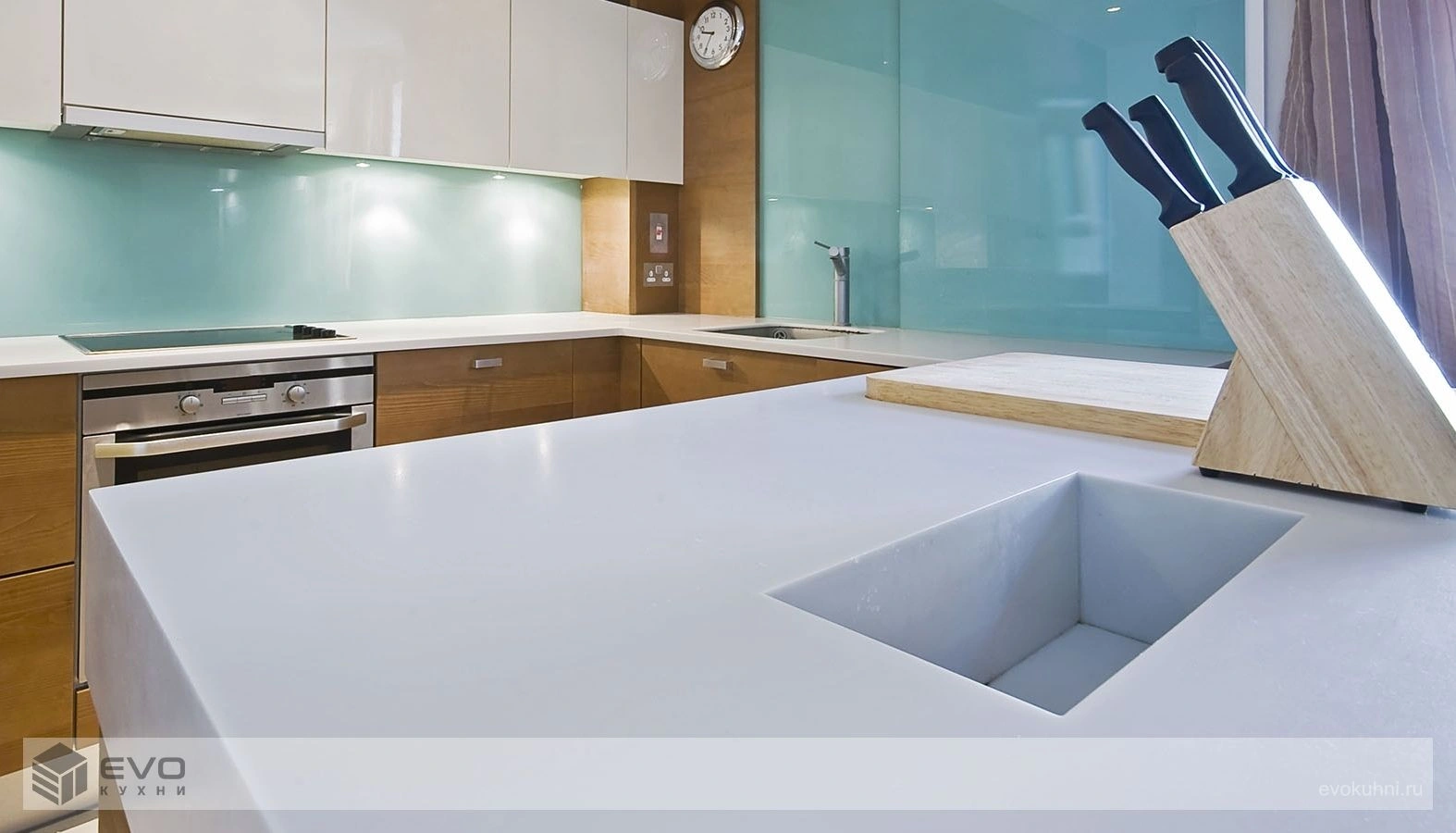 Одним из наиболее востребованных видов искусственного камня стал Corian. Основой этого композитного материала является акриловая смола, тригидрат алюминия и пищевые красители. Именно этим обусловлена высокая технологичность, великолепный внешний вид и экологическая безопасность данного вида искусственного камня.