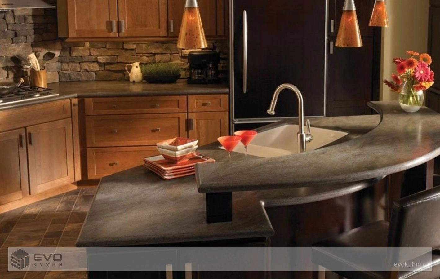 Одним из наиболее востребованных видов искусственного камня стал Corian. Основой этого композитного материала является акриловая смола, тригидрат алюминия и пищевые красители. Именно этим обусловлена высокая технологичность, великолепный внешний вид и экологическая безопасность данного вида искусственного камня.