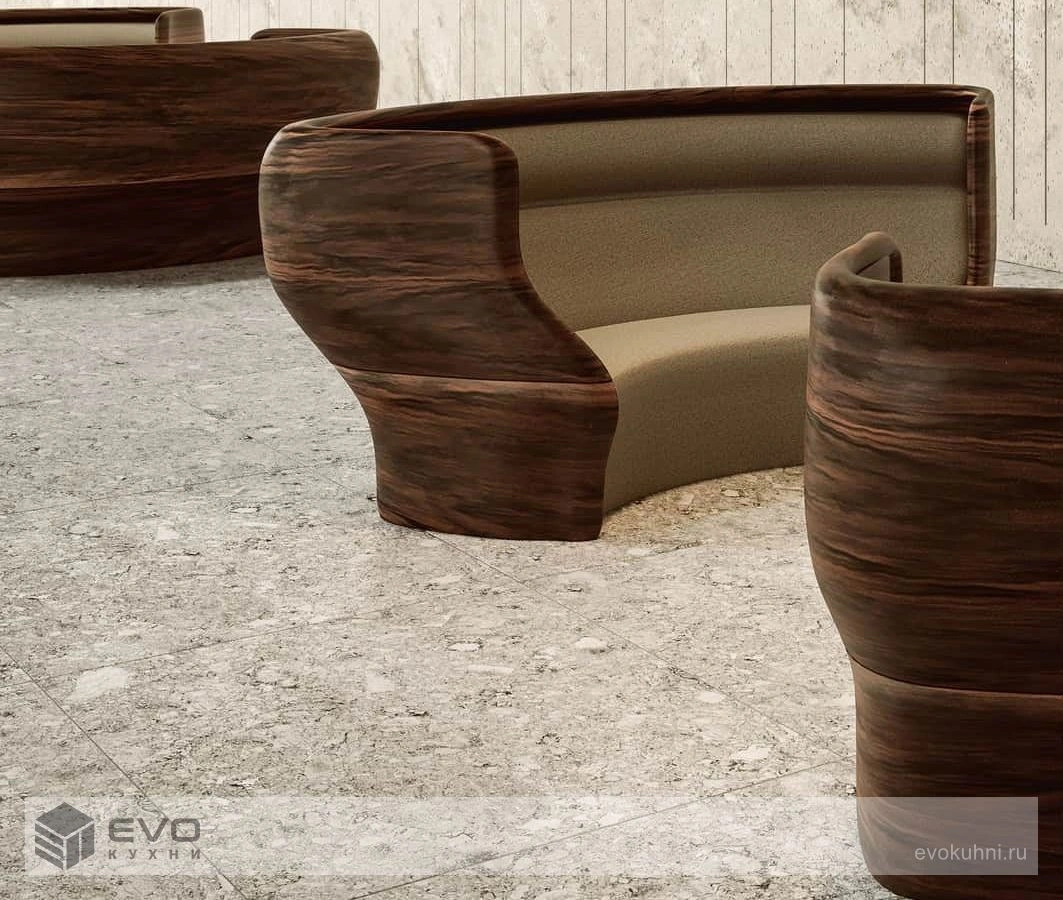 Дизайнеров этот материал привлекает тем, что при термообработке ему можно придать любую форму, поэтому из него зачастую производятся разнообразные элементы декора. Чаще всего, изделия из данного вида искусственного камня применяются в интерьерах ванных комнат, кухонь, для изготовления мебели, осветительных приборов, подоконников, при облицовке стен.
