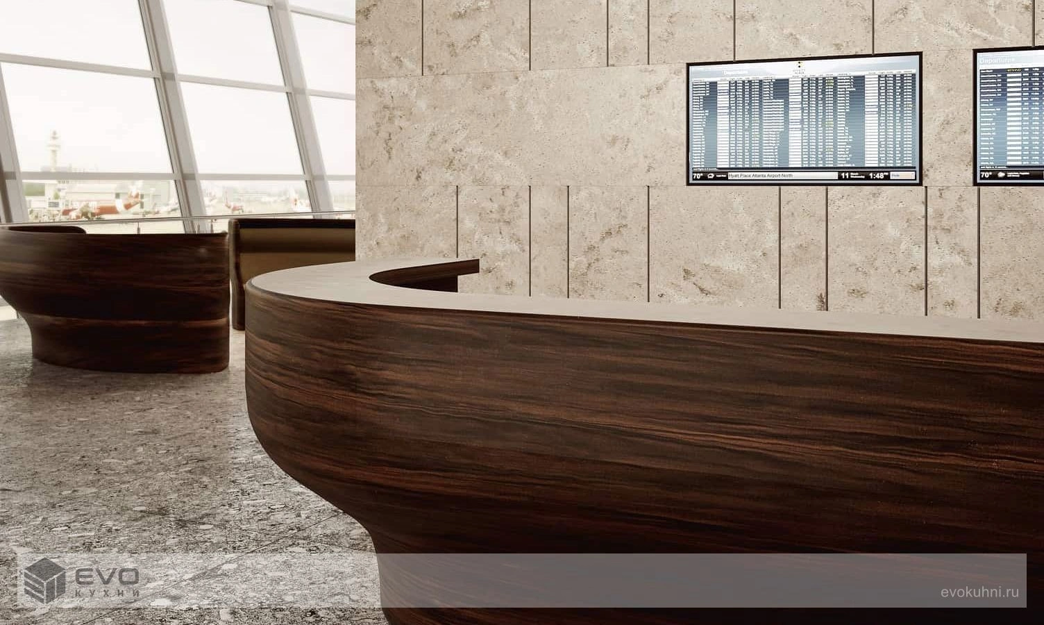 Corian Mahogany Nuwood cодержит прожилки, расположенные случайным образом. Прожилки могут быть различной насыщенности и выделять места швов. Предоставляемые образцы могут не отражать полной художественной картины.