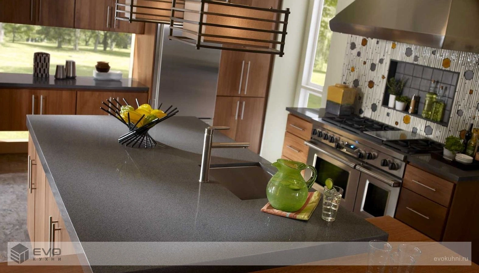 Одним из наиболее востребованных видов искусственного камня стал Corian. Основой этого композитного материала является акриловая смола, тригидрат алюминия и пищевые красители. Именно этим обусловлена высокая технологичность, великолепный внешний вид и экологическая безопасность данного вида искусственного камня.