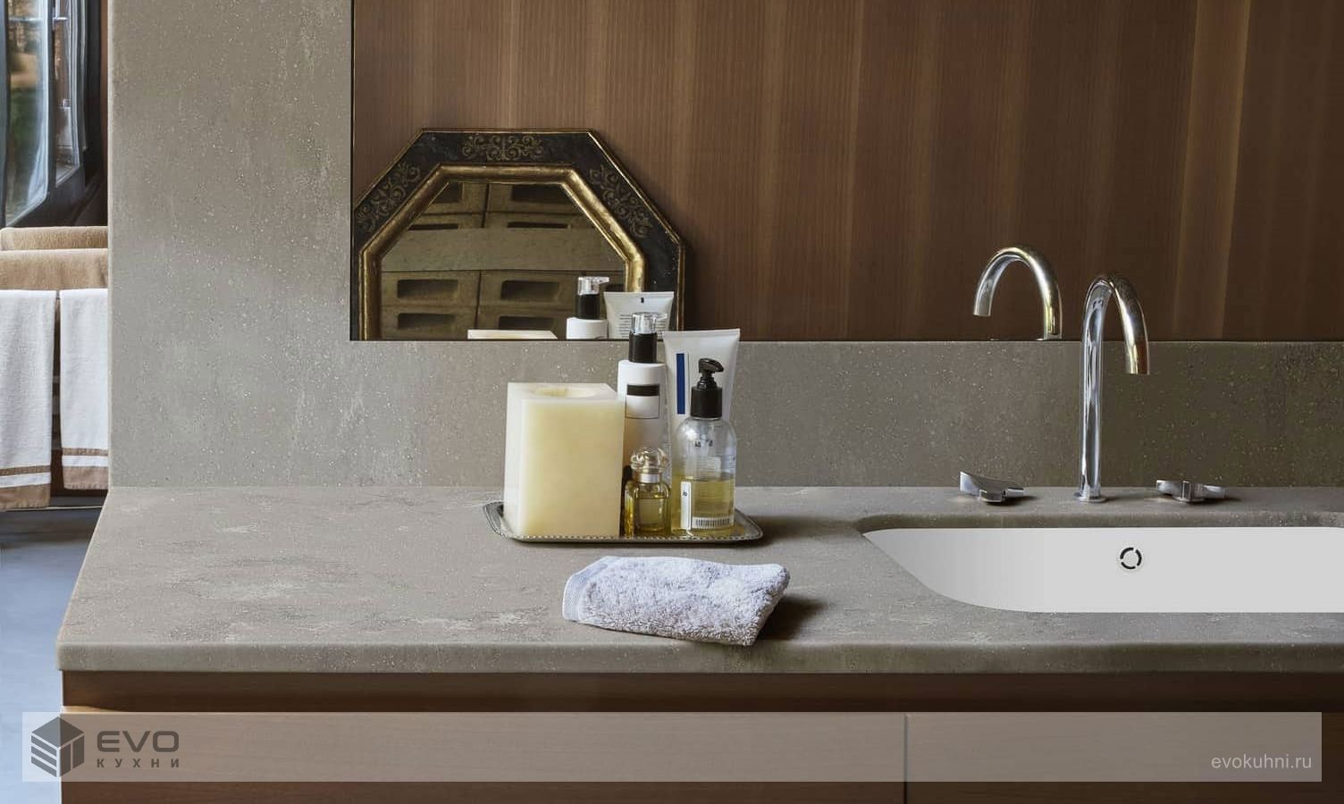 Corian Weathered Aggregate cодержит прожилки, расположенные случайным образом. Прожилки могут быть различной насыщенности и выделять места швов. Предоставляемые образцы могут не отражать полной художественной картины.