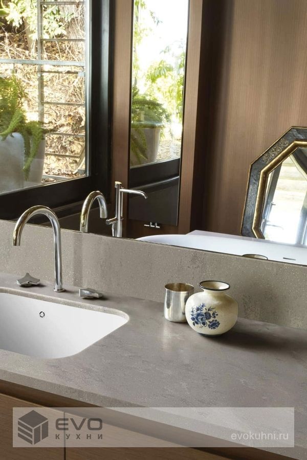 Дизайнеров этот материал привлекает тем, что при термообработке ему можно придать любую форму, поэтому из него зачастую производятся разнообразные элементы декора. Чаще всего, изделия из данного вида искусственного камня применяются в интерьерах ванных комнат, кухонь, для изготовления мебели, осветительных приборов, подоконников, при облицовке стен.