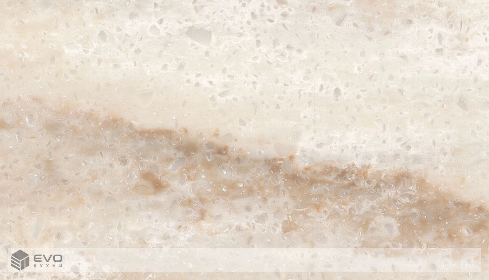 Corian Witch Hazel это натуральный светлый оттенок, где неравномерные чуть контрастные прожилки орехового тона пронизывают полупрозрачную основу камня с вкраплениями светлых частиц.