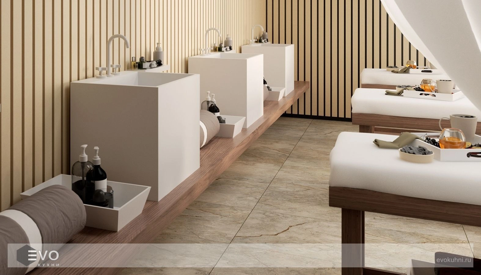 HI-MACS — это композитный материал из акриловой смолы, минерального наполнителя и пигмента, проходит технологический процесс отверждения при высокой температуре, который придает поверхности отличные прочностные характеристики, а также облегчает процесс 3D-проектирования и реставрации. Разработанная по последним технологиям структура этого материала позволяет считать ее одним из самых качественных отделочных материалов.
