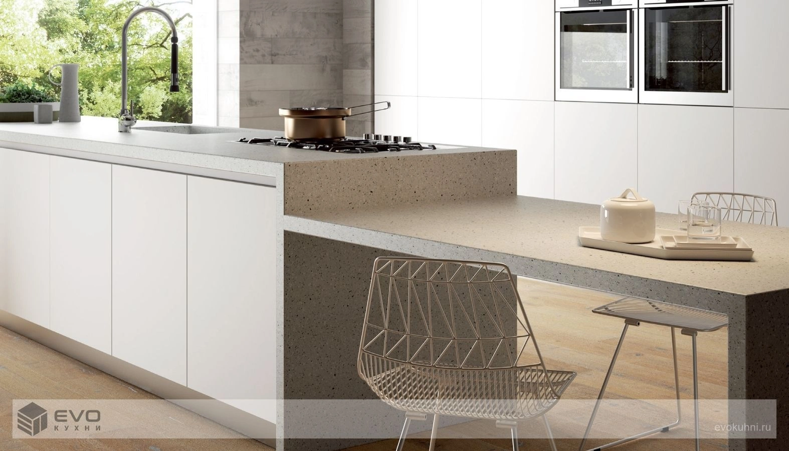 - устойчивость – камень не боится влаги, демонстрирует стойкость к изменению температур, что делает его отличным решением для использования на кухне, способствуя долговечности;