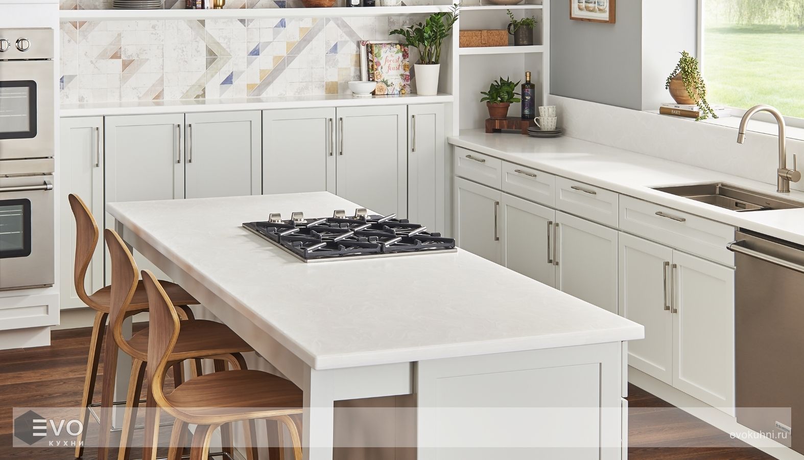 - устойчивость – камень не боится влаги, демонстрирует стойкость к изменению температур, что делает его отличным решением для использования на кухне, способствуя долговечности;