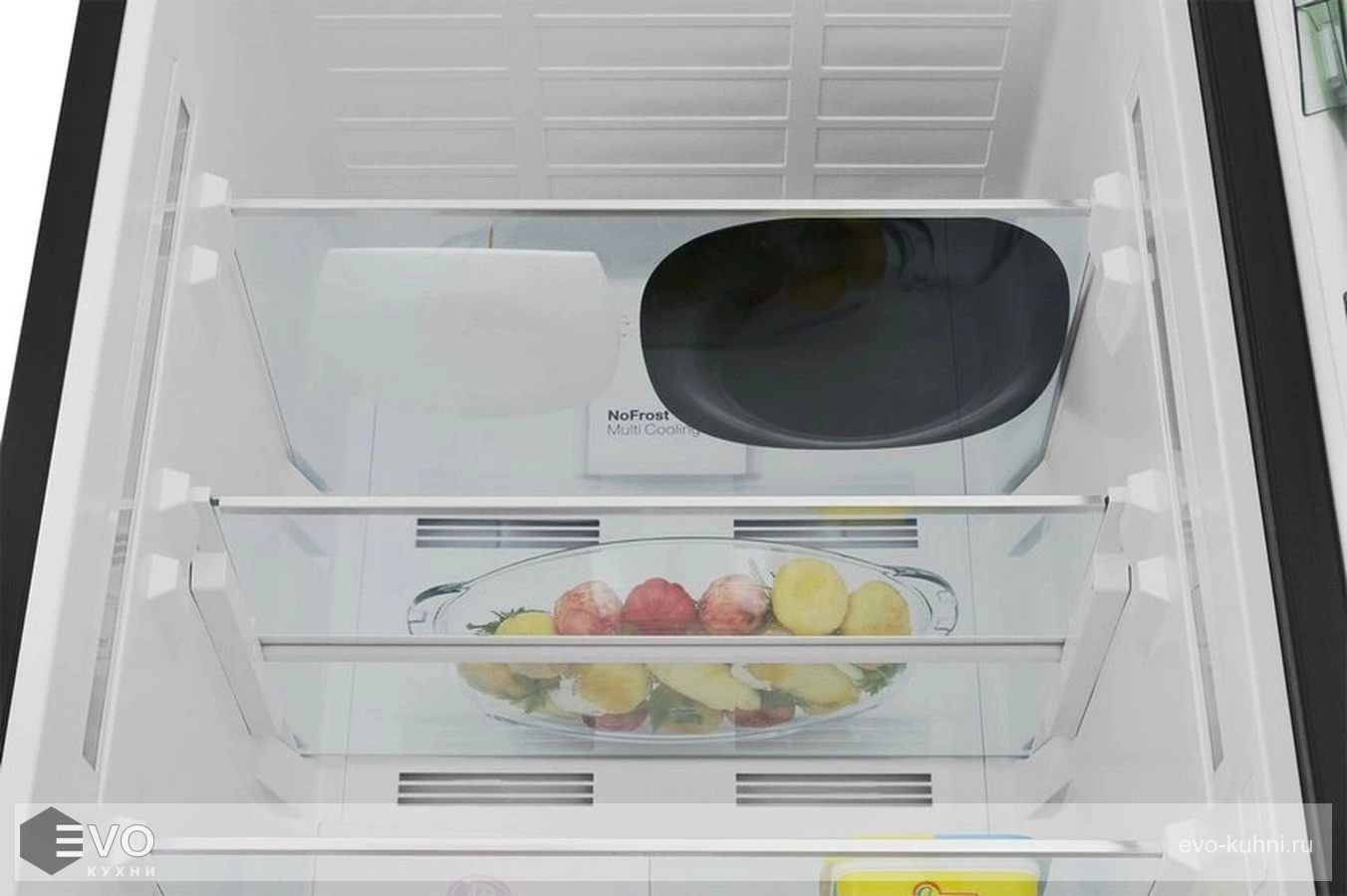 No frost Multi Cooling Технология No frost Multi cooling включает в себя две независимые циркуляции воздуха с двумя отдельными вентиляторами и испарителями, обеспечивая дополнительную свежесть с оптимальным уровнем влажности в каждом отделении. Использование данной технологии предотвращает смешивание запахов и сохраняет натуральный вкус продуктов.