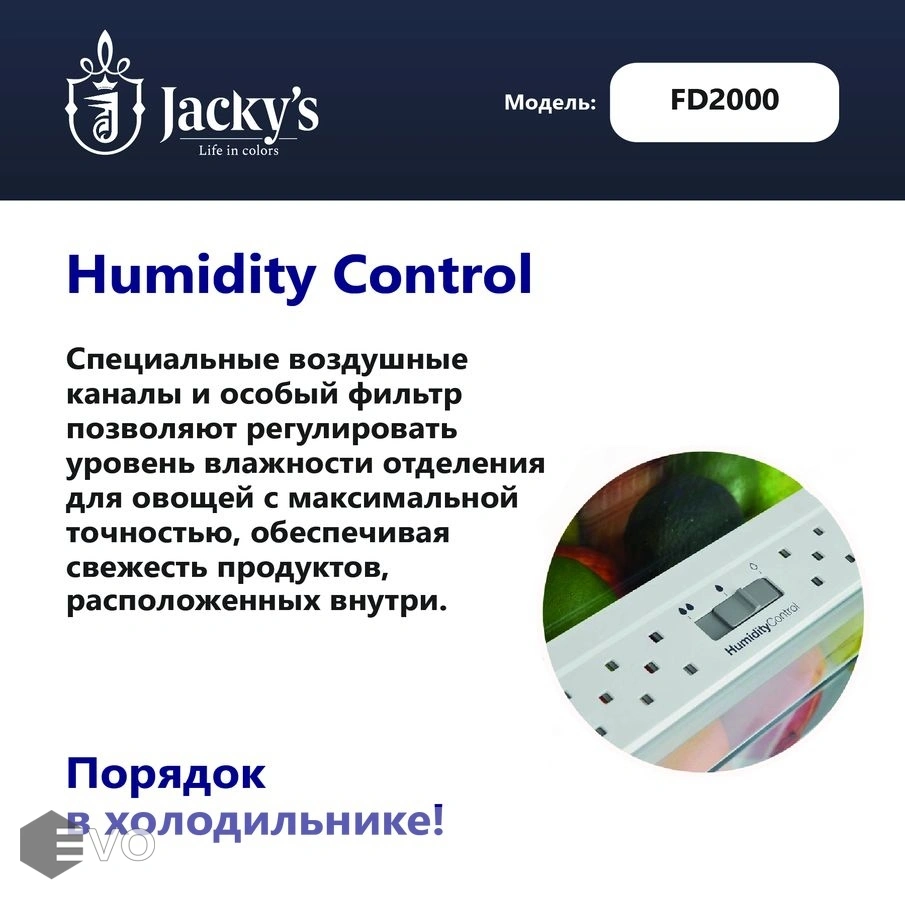 Холодильник Jacky's JR FD2000 - двухкамерная модель с нижним расположением морозильной камеры, общим объёмом 379 литров, выполненная в цвете вороненая сталь.