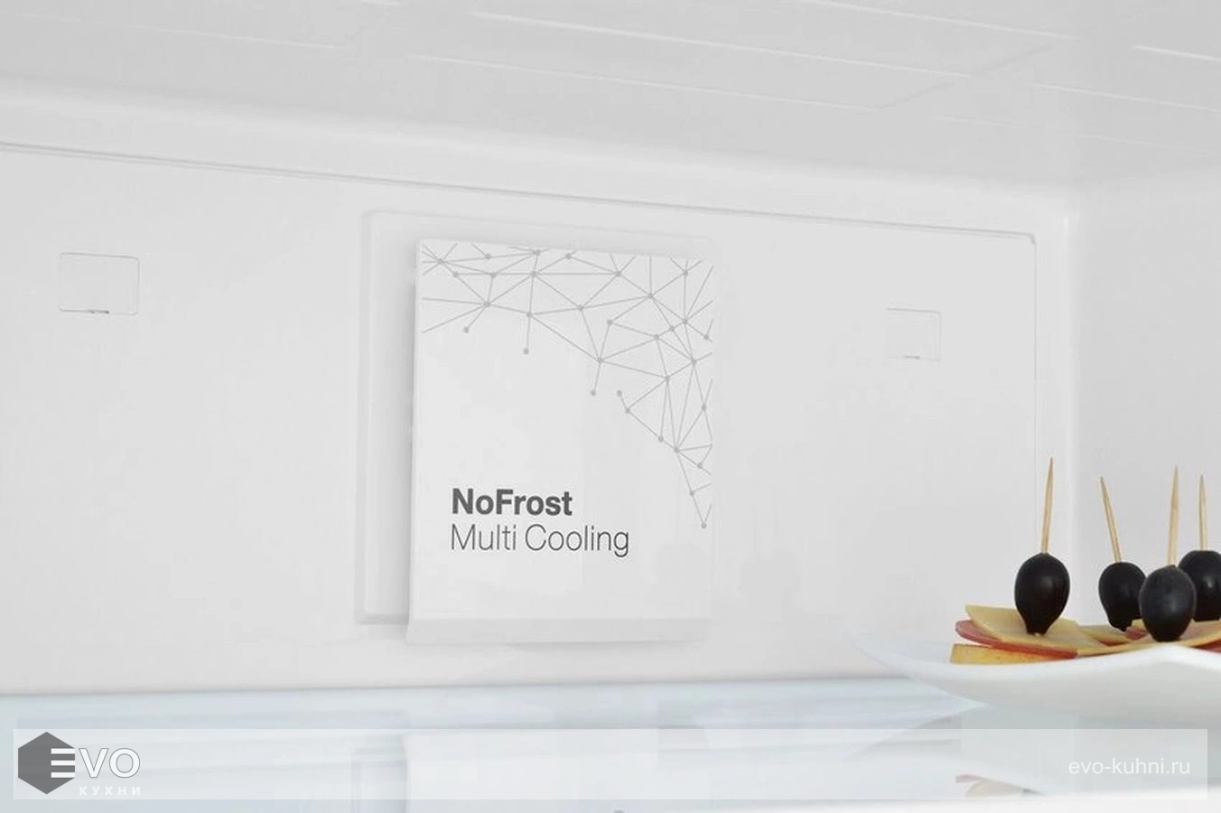 No frost Multi Cooling Технология включает в себя две независимые циркуляции воздуха с двумя отдельными вентиляторами и испарителями, обеспечивая дополнительную свежесть с оптимальным уровнем влажности в каждом отделении. Использование данной технологии предотвращает смешивание запахов и сохраняет натуральный вкус продуктов.