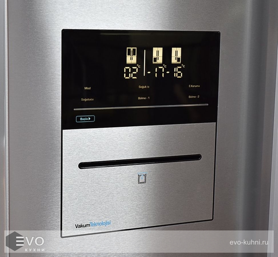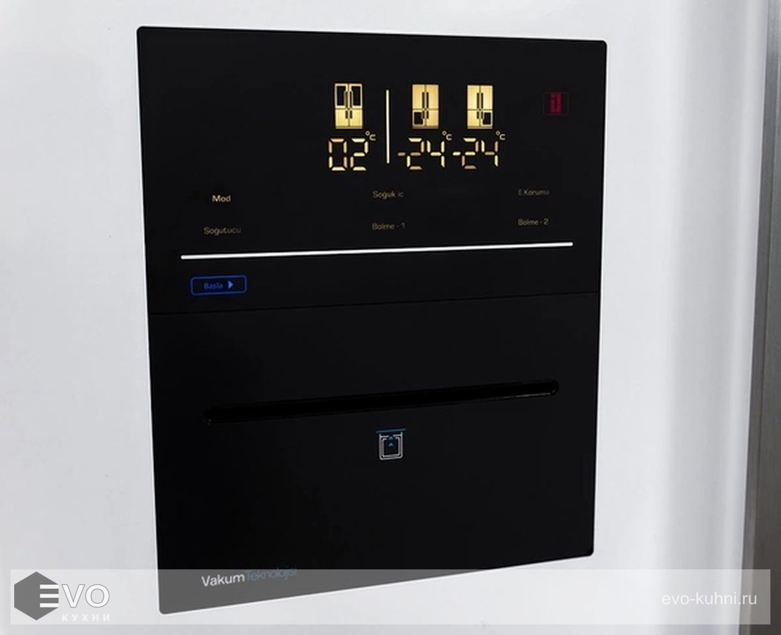 Зона свежести гарантирует, что пища внутри сохраняется при идеальной температуре около 0°C. Замороженное мясо или рыбу также можно хранить в этом отделении для размораживания перед употреблением. Зона свежести также гарантирует, что ваше мясо и рыба дольше остаются свежими, не допуская появления нежелательного запаха.