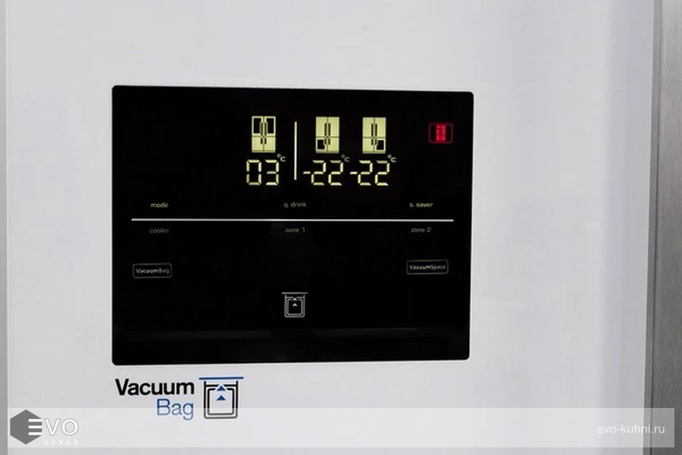 Vacuum bag - Встроенный вакуумизатор продлевает срок хранения продуктов и сохраняет продукты свежими до 8 раз дольше. Увеличивает срок службы продуктов за счет удаления кислорода. Уменьшает рост бактерий. Предотвращает возникновение неприятных запахов. Вакуумную еду можно приготовить с помощью техники sous vide.