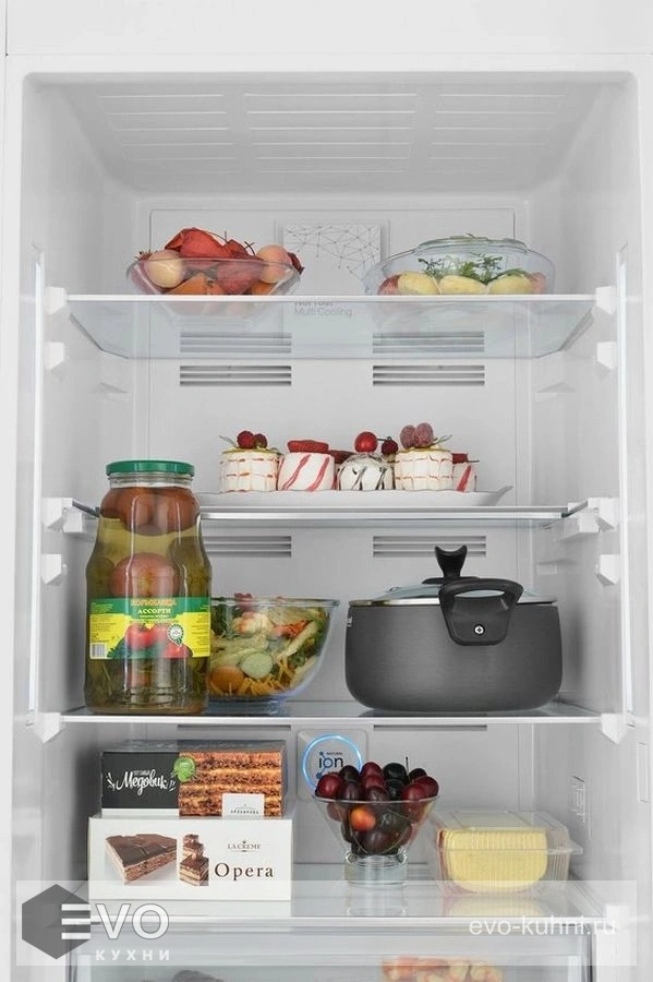 No frost Multi Cooling Технология No frost Multi cooling включает в себя две независимые циркуляции воздуха с двумя отдельными вентиляторами и испарителями, обеспечивая дополнительную свежесть с оптимальным уровнем влажности в каждом отделении. Использование данной технологии предотвращает смешивание запахов и сохраняет натуральный вкус продуктов.