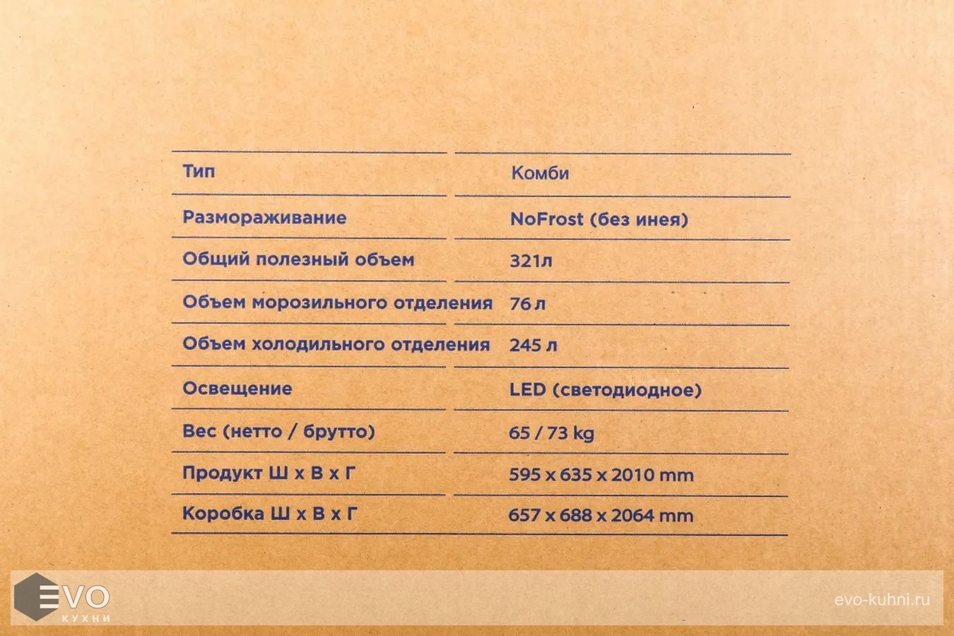 - Полезный объем холодильника 321 л