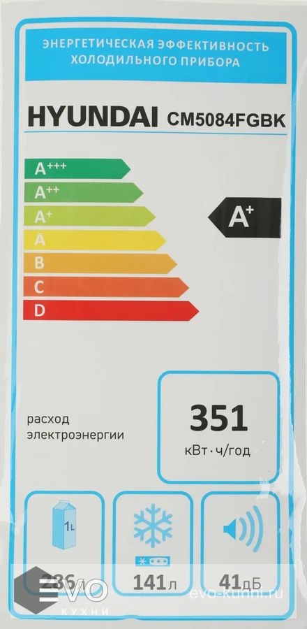 - Потребление энергии 351 кВт*ч/год
