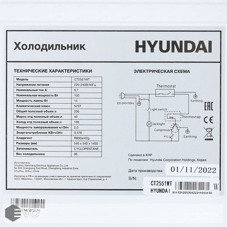 Холодильник Hyundai CT2551WT