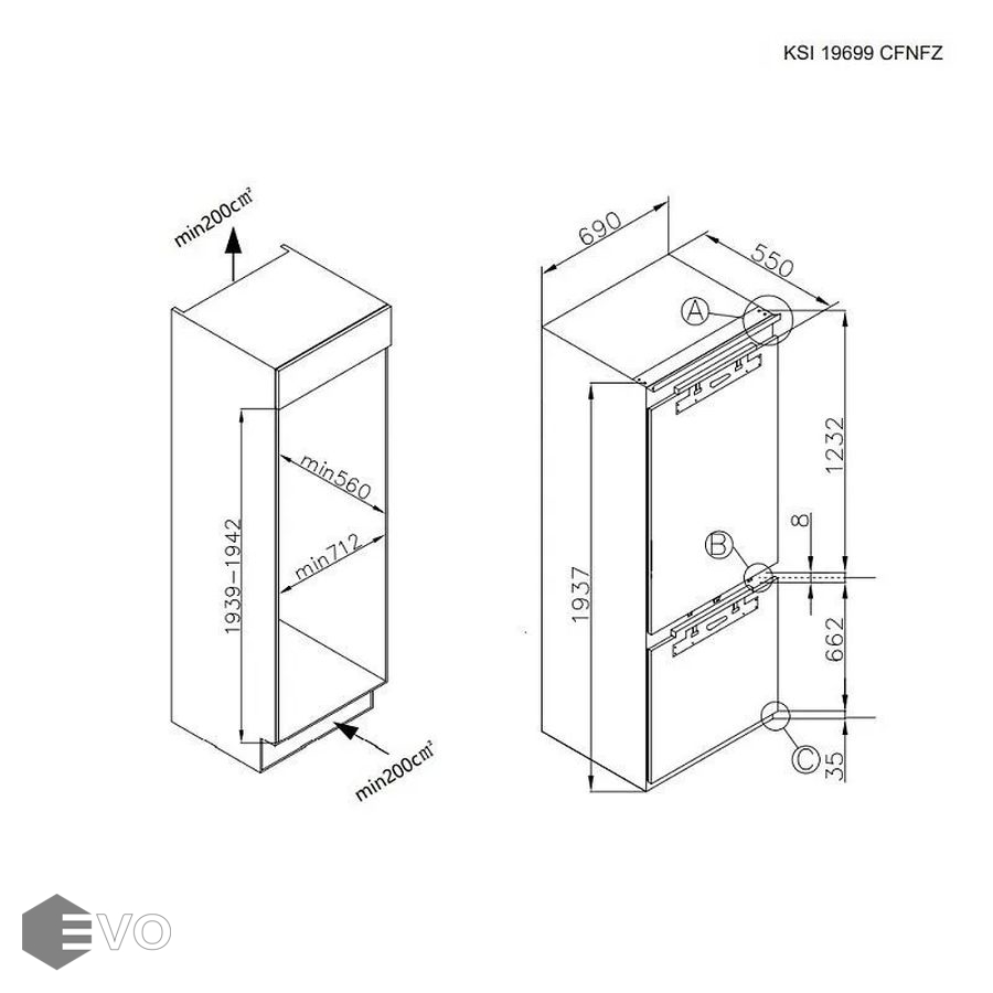 Размеры встраивания (ВхШхГ), мм: | 1937х690х550 мм |
