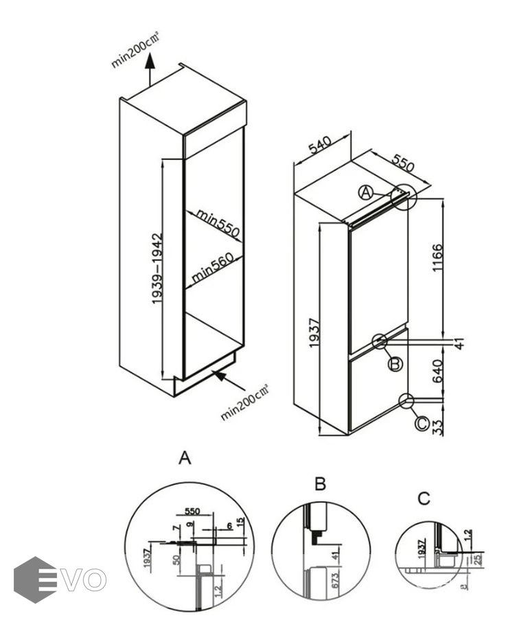 Размеры встраивания (ВхШхГ), мм: | 1939-1942х560х550 |
